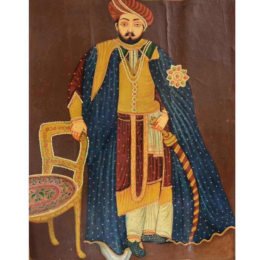 Handmade painting of a Hindu maharaja for home interior decoration, office décor, and gifting to friends and family for housewarmings, weddings, and other special occasions.