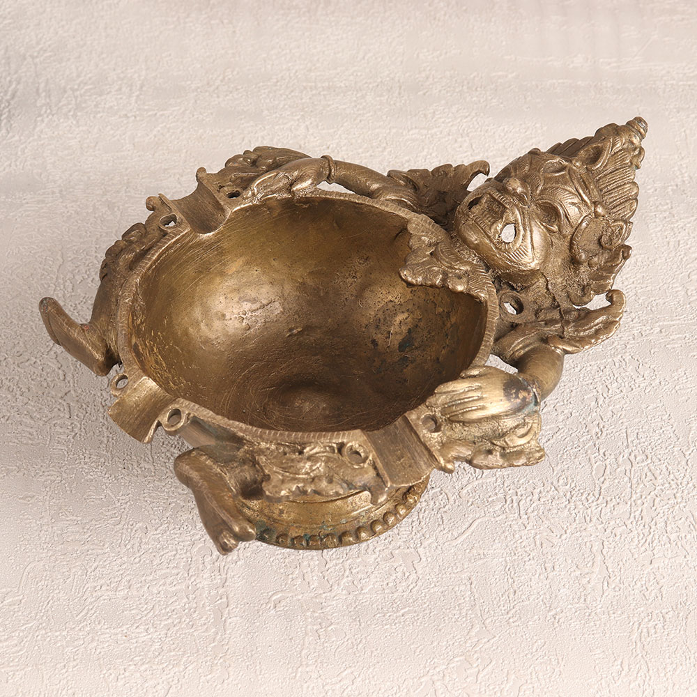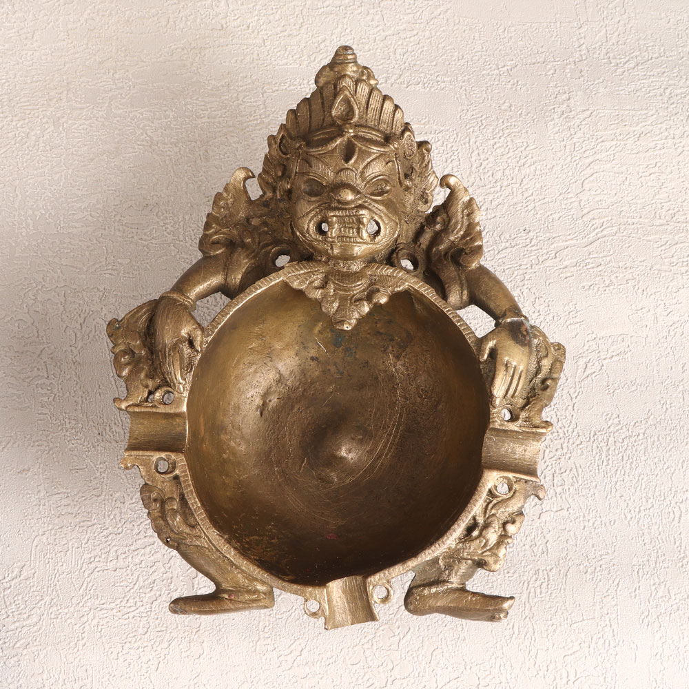 Decorate your interior with a touch of timeless artistry and craftsmanship with our exquisite Brass Ashtray. Handcrafted by skilled Indian artisans in the Nepalese Art tradition, this ashtray showcases a remarkable blend of culture and artistry. The ashtray features a captivating face carved on one side, adding an air of mystery and intrigue to its design. Its antique brown finish exudes a sense of history and authenticity, making it a perfect addition to your home, office, hotel, cafe, shop, or restaurant. Crafted with the utmost care and precision, this ashtray is a work of art that transcends time. Place it on your table top or mantle for a touch of elegance and sophistication. This versatile piece can be integrated into your vintage collection or proudly displayed at exhibitions, showcasing its unique cultural significance. Moreover, it makes for an excellent gift for your family, friends or relatives during special, festive, or auspicious occasions, reflecting your appreciation for their taste and style. Discover the beauty of tradition and artistry with this exceptional Brass Ashtray.