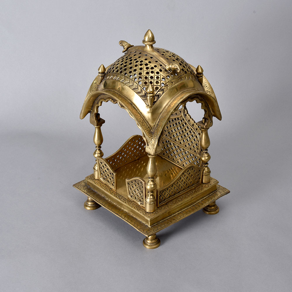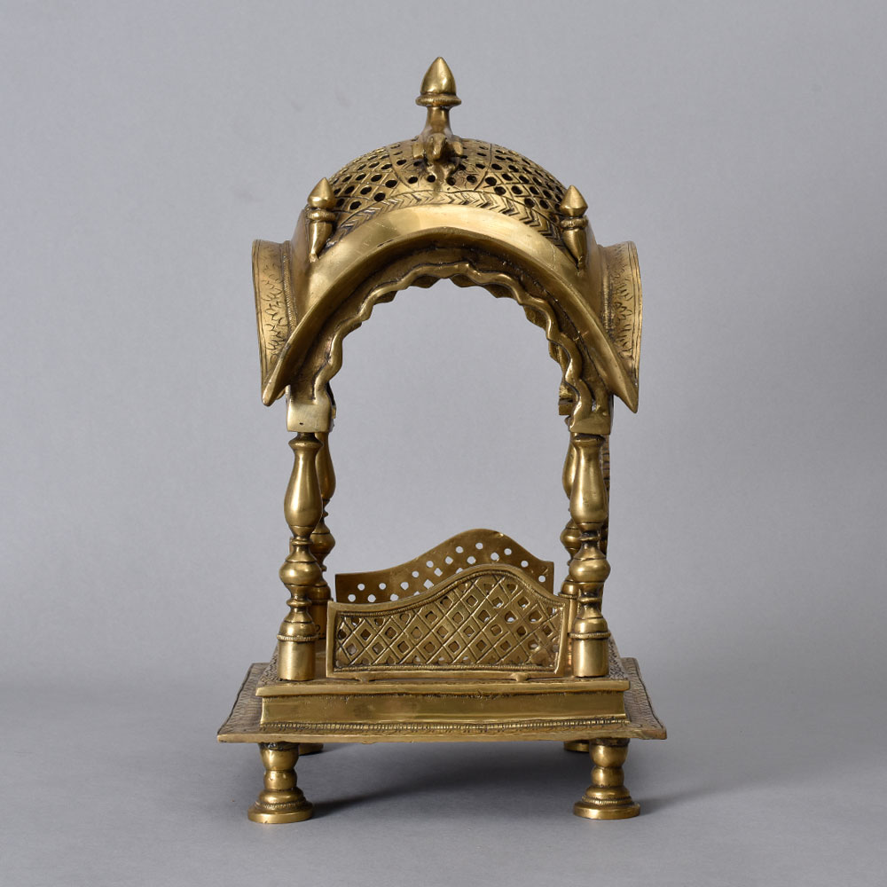 Step into a realm of sacred wonder with this exquisite vintage brass temple from Northern India. Meticulously crafted by skilled artisans, this piece radiates an aura of timeless spirituality that will captivate and inspire. The solid brass construction is adorned with intricate engravings, each one a testament to the rich cultural heritage of the region. Whether displayed in your living room, meditation space, or office, this temple will serve as a stunning focal point, evoking the serene atmosphere of ancient places of worship. Its presence will fill your space with a sense of grounding, peace, and connection to something greater. Use it as a centerpiece for your spiritual practice, light candles around it, or simply gaze upon it to find respite from the stresses of daily life. This vintage brass temple is the perfect addition for those seeking to infuse their environment with the sacred energy of India's spiritual traditions. Invite the mysticism of the East into your home and allow its timeless beauty to elevate your daily experience. Discover the profound impact of this remarkable piece and let it become a cherished part of your life.