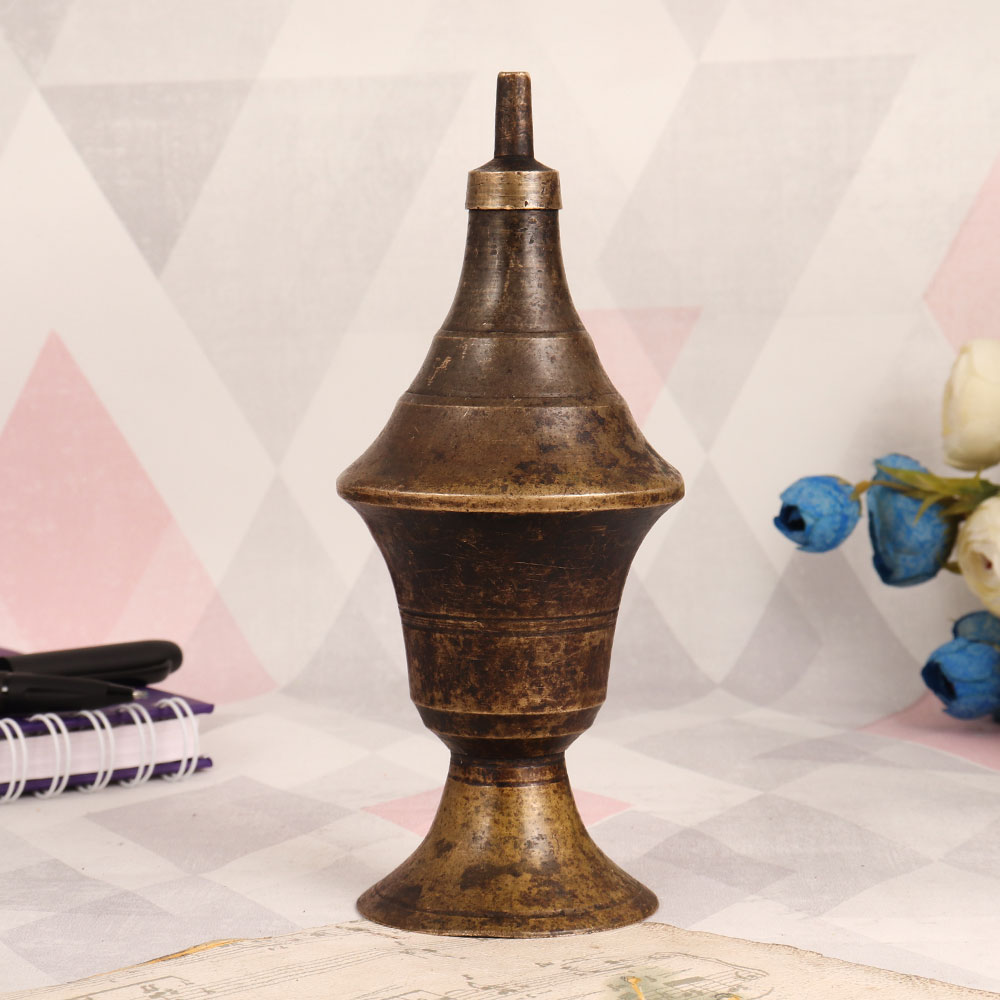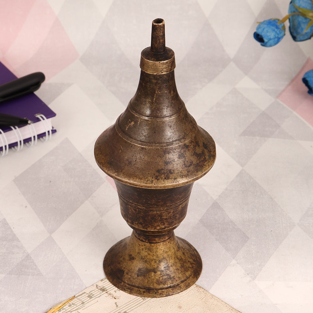 Enhance your interior decor with the timeless elegance of our Brass Oil Lamp Base in a rich antique brown finish. Handcrafted by highly skilled and experienced Indian artisans with meticulous attention to detail, this exquisite piece is a testament to the enduring craftsmanship of the subcontinent. Crafted from high-quality brass, this lamp base exudes an air of sophistication and authenticity that is sure to captivate any onlooker. Its versatility is a hallmark feature, making it an ideal addition to various settings, including your home, office, restaurant, hotel, cafe, or shop. Place it on a mantelpiece, table top, or any prominent surface to instantly elevate the ambiance. Whether you're a collector with an affinity for vintage pieces or an exhibitor looking to make a statement at your next showcase, this lamp base will steal the spotlight. Its classic design is reminiscent of a bygone era, making it a conversation starter and a piece of history in itself. Moreover, it serves as a thoughtful gift for your family, friends or relatives on special, festive, or auspicious occasions, symbolizing not only your appreciation for their presence but also the enduring beauty of Indian craftsmanship. Illuminate your space with tradition, elegance, and a touch of history with our Brass Oil Lamp Base.