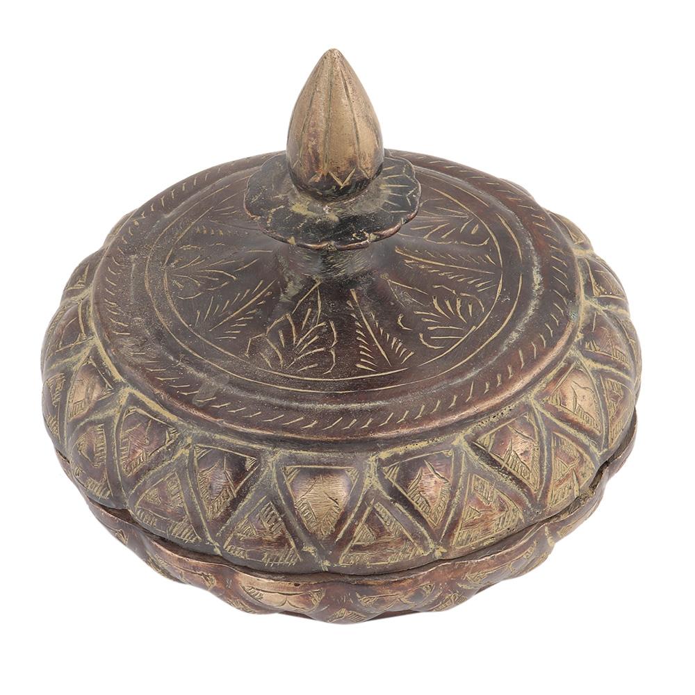 This handmade brass storage box is in the shape of a pumpkin carved with old geometric patterns. Great accessory for your home, whether it's a living room, a living room, or another room! It fits most decorations be it tribal or ethnic.