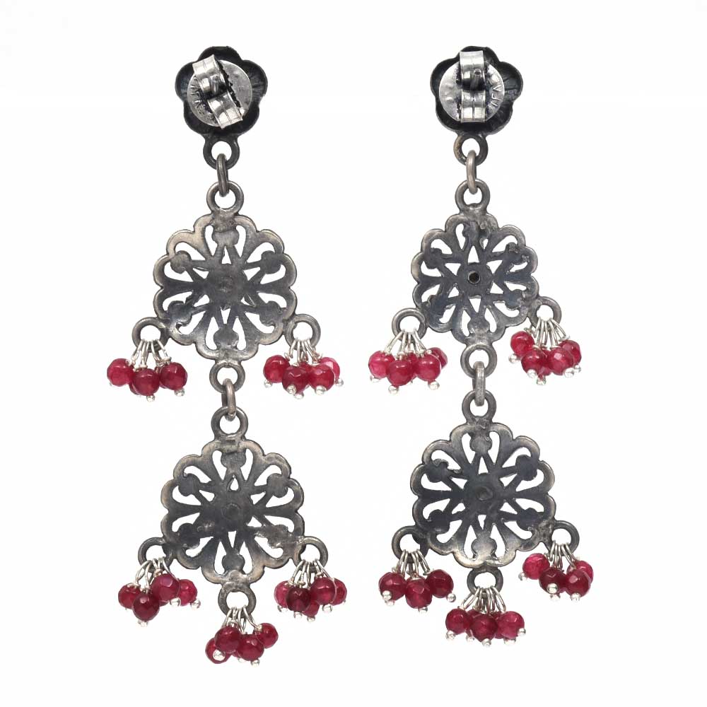 Handmade oxidized silver broken floral red stone drop earrings are the best gifts and personal wear. With matching dresses, they become the focus of various occasions.