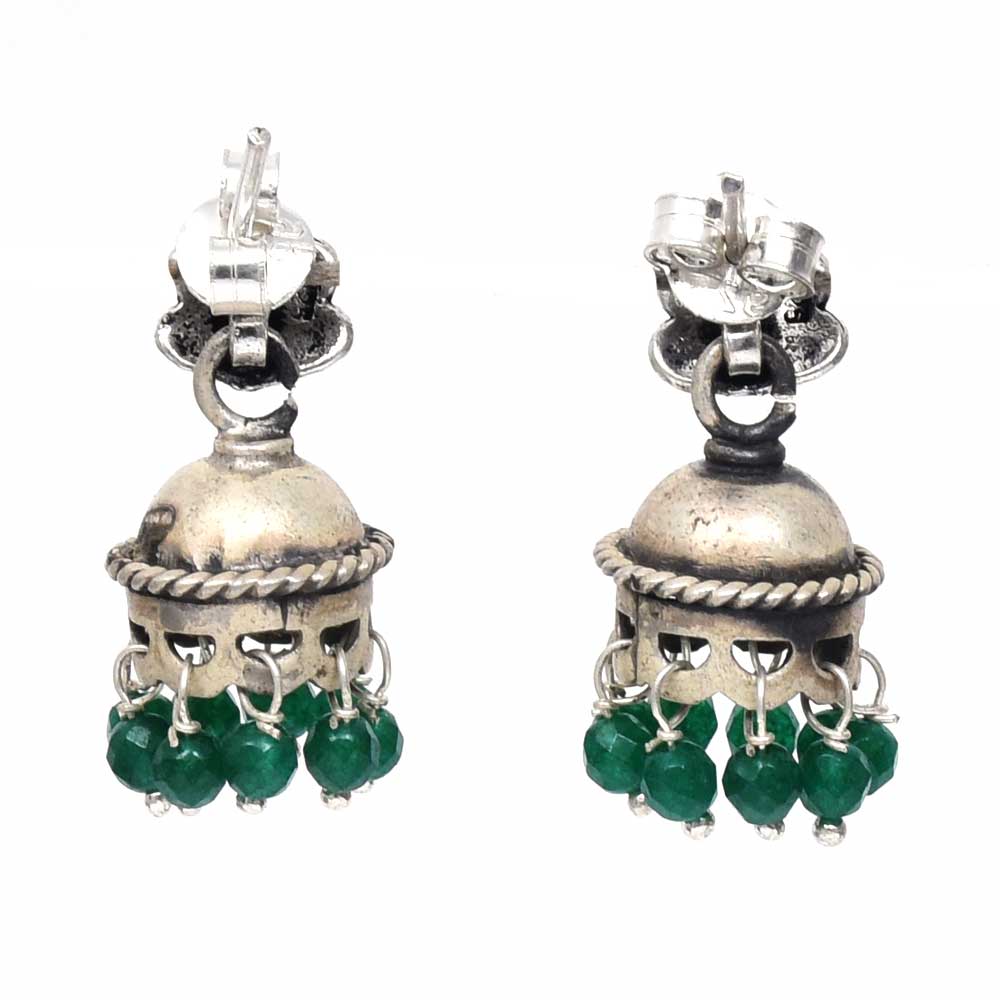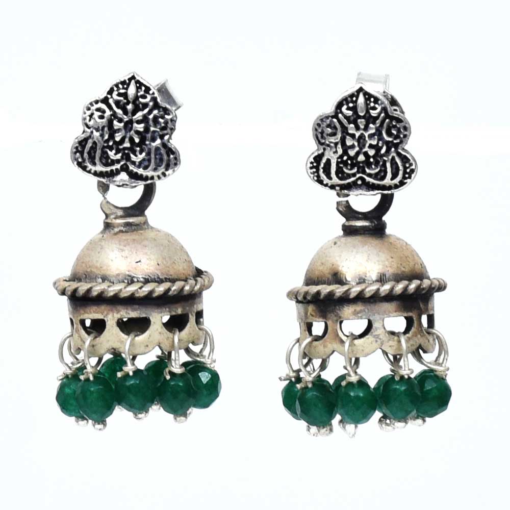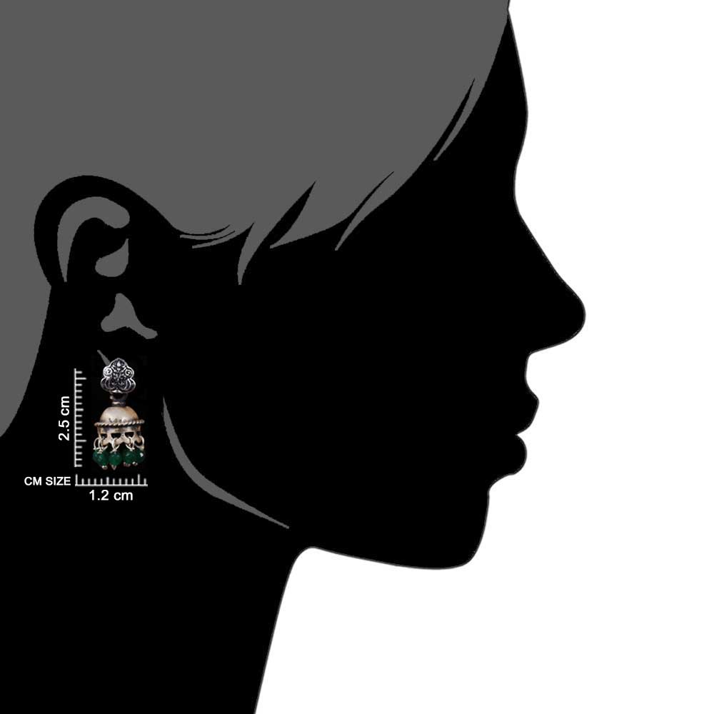 These oxidized silver earrings have floral motifs on the top and Jhumkis on the bottom, mesmerizing everyone with their looks. Pair these with your traditional clothing to complete your ethnic look.