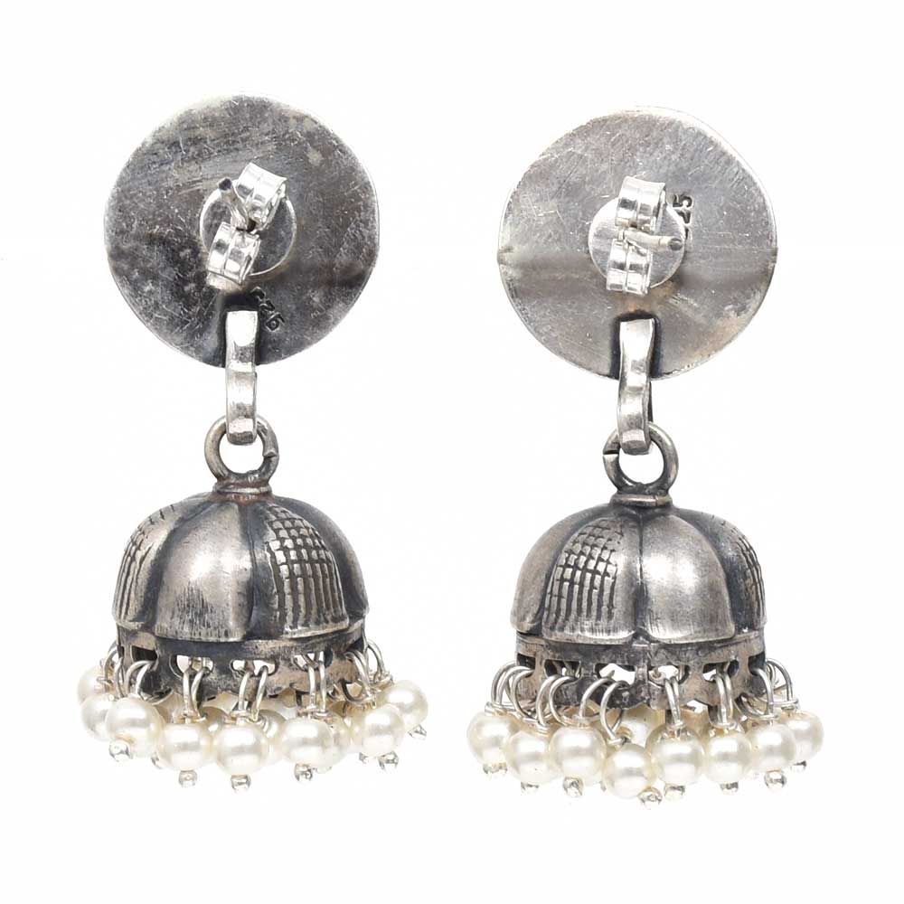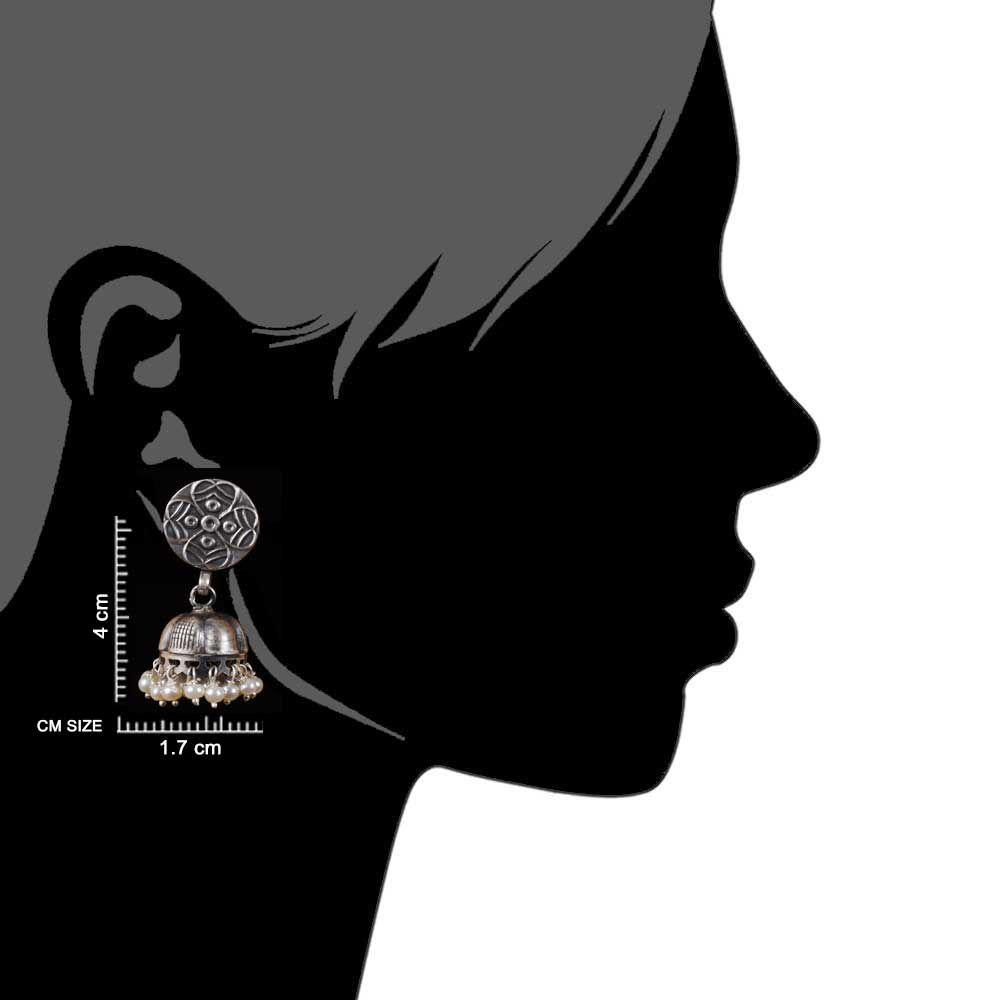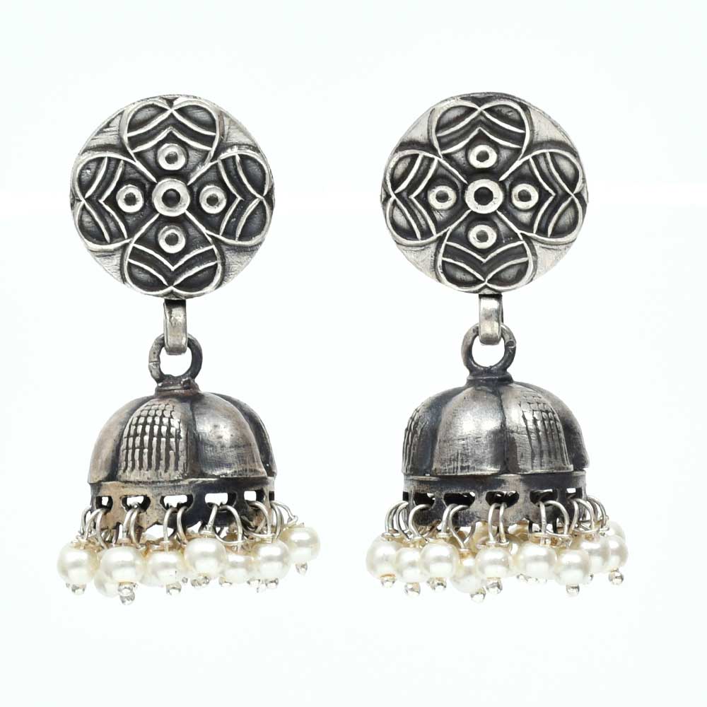 Silver Round Engraved Jhumki Earrings With Pearl Hangings perfect beautiful & memorable gift for you and your loving wife, girlfriend, sister, aunt, daughter and mom.