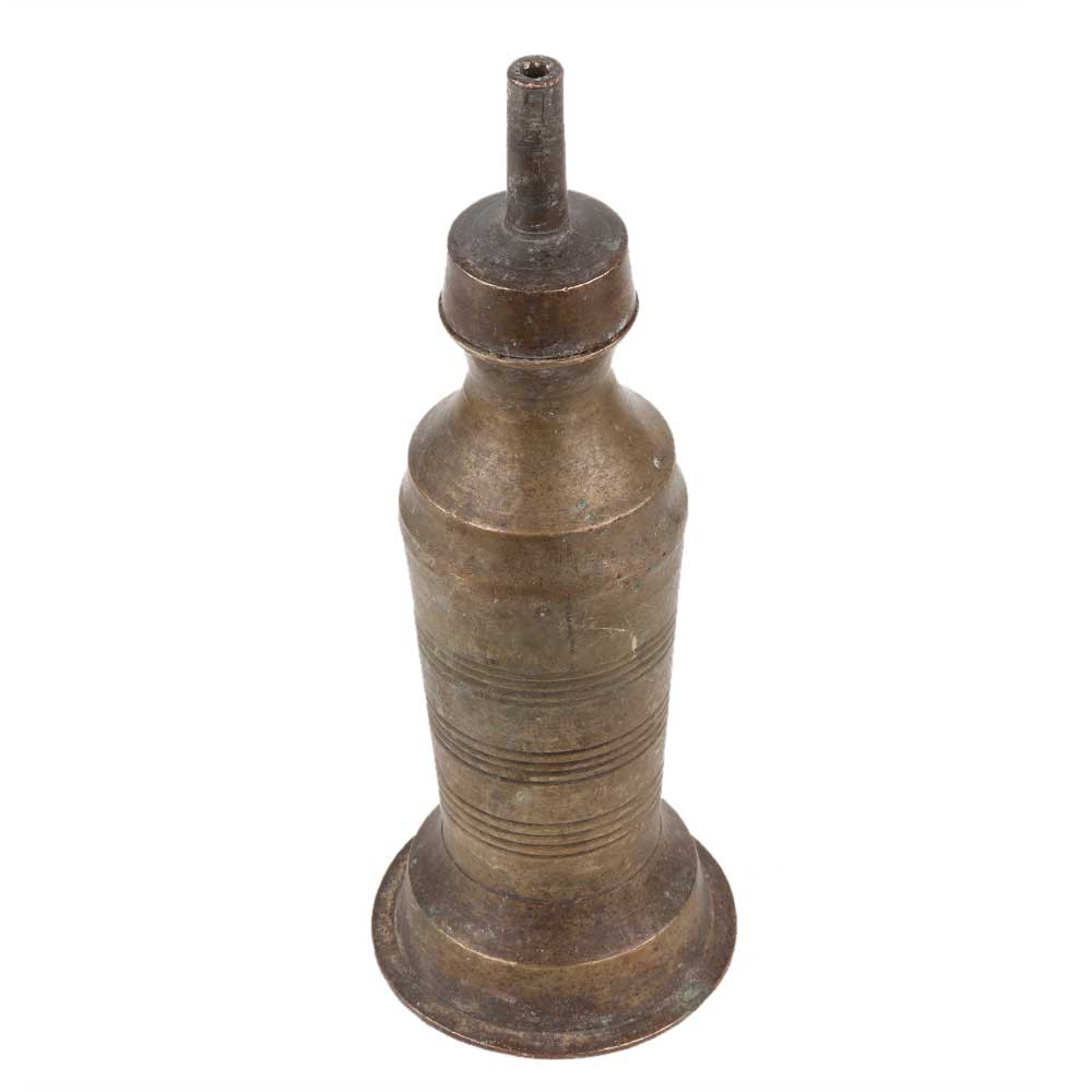 This handmade golden polished old brass kerosene oil lamp has an engraved design made by skilled craftsmen in India. Gift it on Diwali, Anniversary or use it for your personal collection.