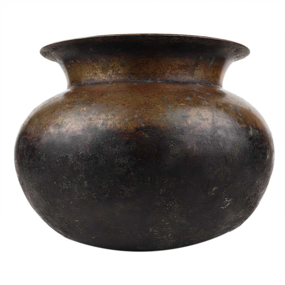 • Handmade Patina Rich Round Brass Pot Or Lota