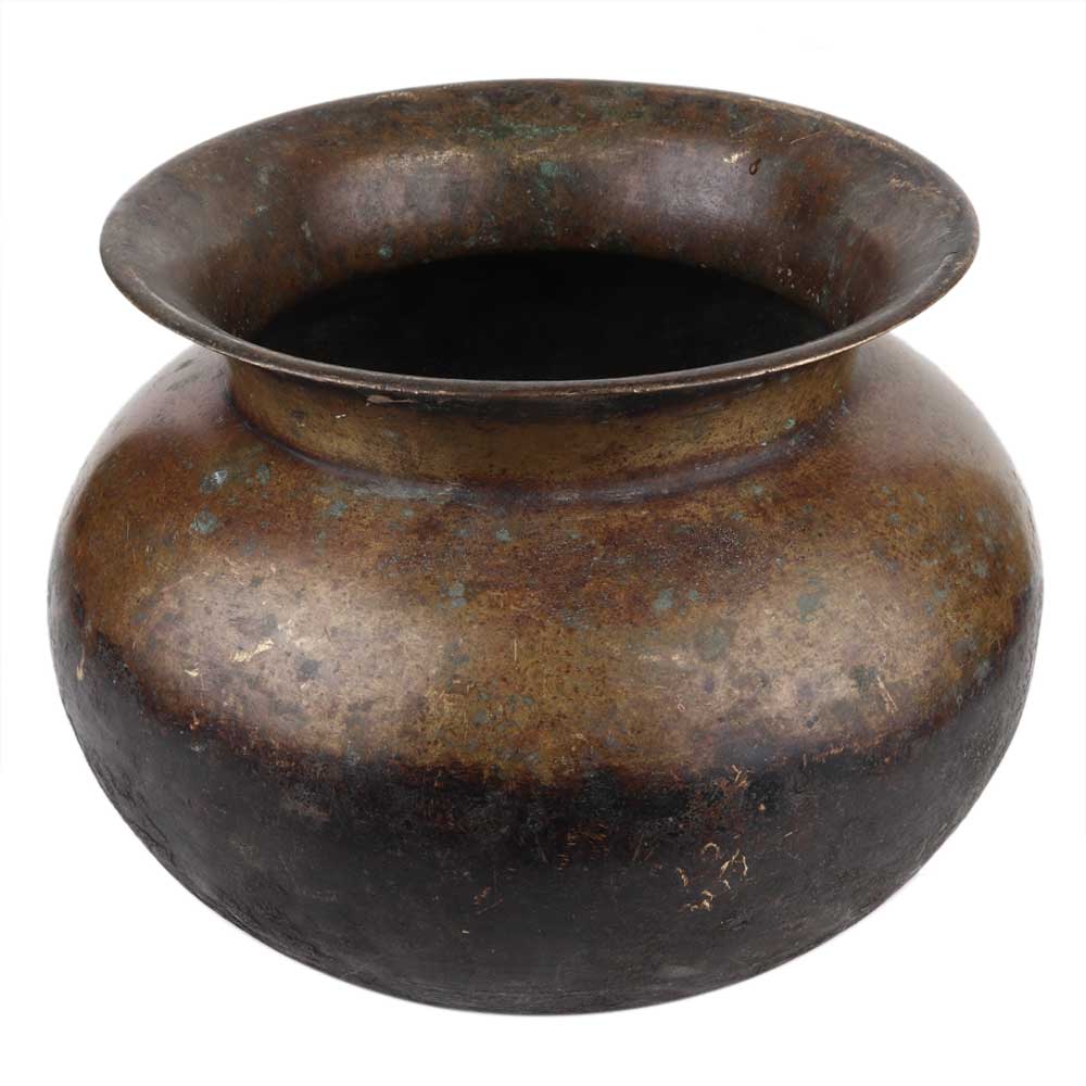 Handmade Patina Rich Round Brass Pot Or Lota
