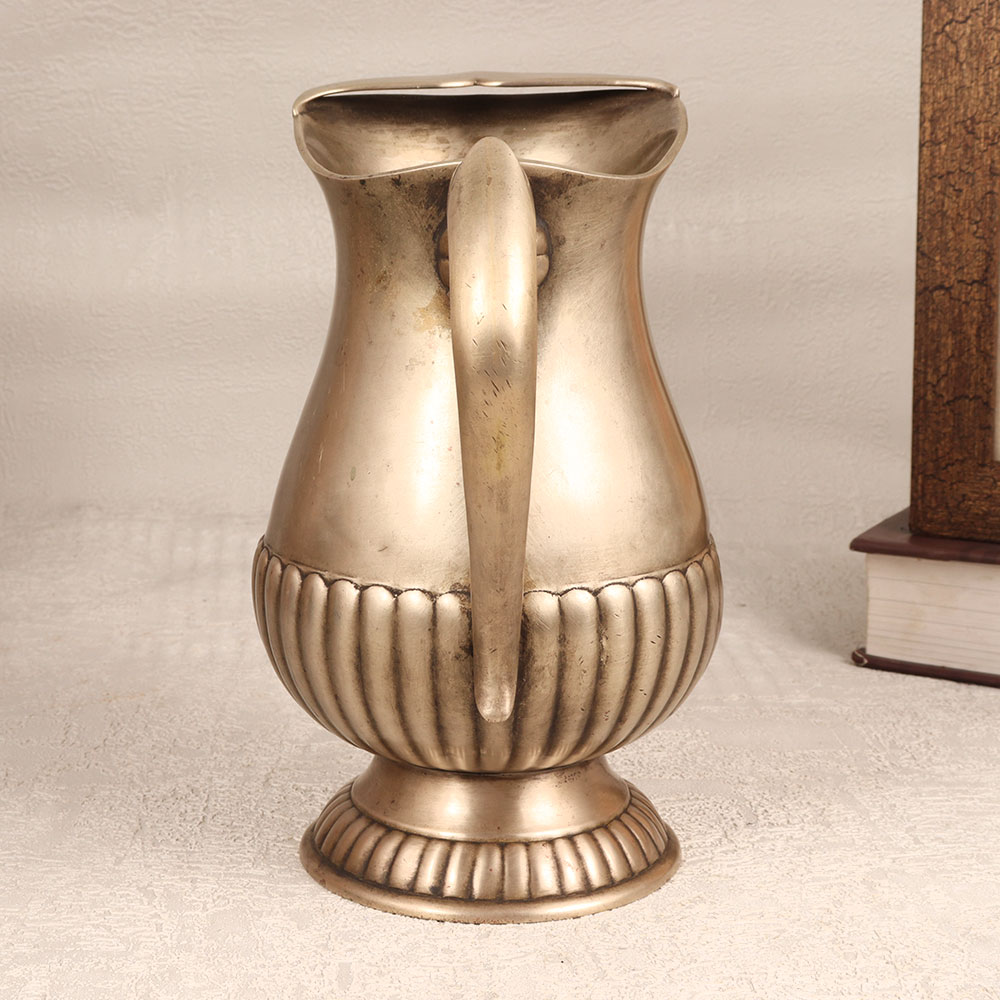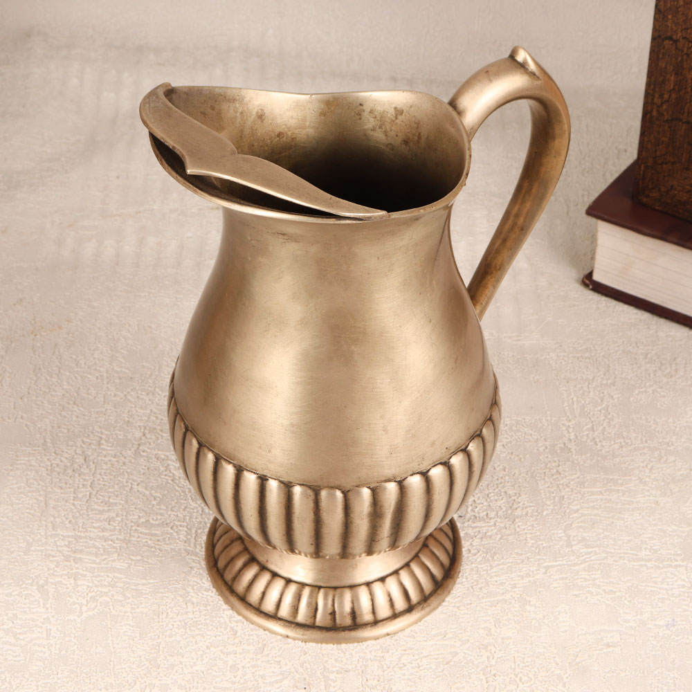 Enhance your decor with our exquisite Vintage White Metal Jug that is a captivating blend of timeless elegance and artisanal craftsmanship. Handmade by highly skilled and experienced Indian artisans in the distinguished English Art style, this jug seamlessly combines functionality with aesthetic appeal. Crafted from high-quality white metal, its antique silver finish exudes an aura of vintage charm, making it a perfect addition to any space. The jug's versatile design allows it to double as a unique flower pot, adding a touch of nature to your surroundings. Ideal for home, office, restaurant, hotel, or cafe settings, it effortlessly enhances the ambiance with its classic allure. Its graceful figure not only serves as a delightful decoration but also as a conversation starter. This masterpiece is more than just a decor item, it's a collector's dream. Adding it to your vintage collection will infuse your space with character and history. Beyond personal indulgence, this Vintage White Metal Jug makes for an exquisite gift for your family, friends or relatives on special, festive, or auspicious occasions, creating lasting memories and treasured moments. Embrace the artistry, heritage, and sophistication embodied in this meticulously crafted jug, a true testament to the skilled hands that brought it to life.