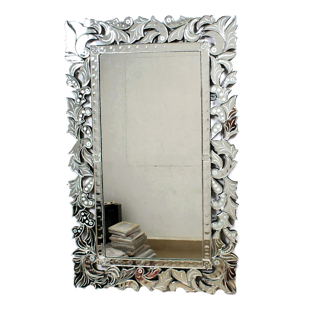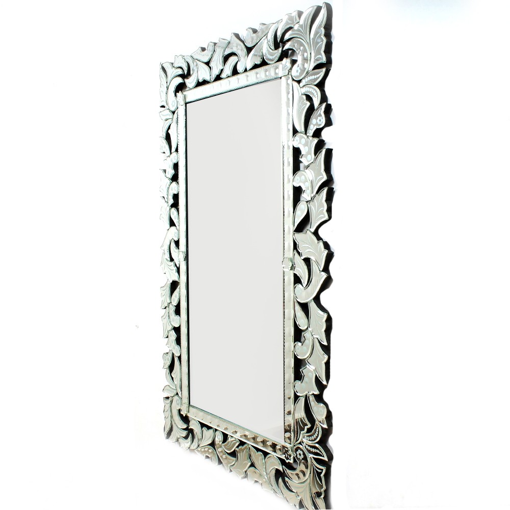 The edge of this elegant Rectangle Venetian wall mirror for furniture and lighting is decorated with cut glass shapes, adding a charming charm. The Venetian style mirror in the mirror adds light and visual appeal to any room.