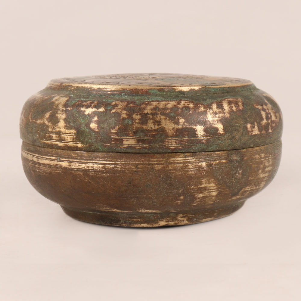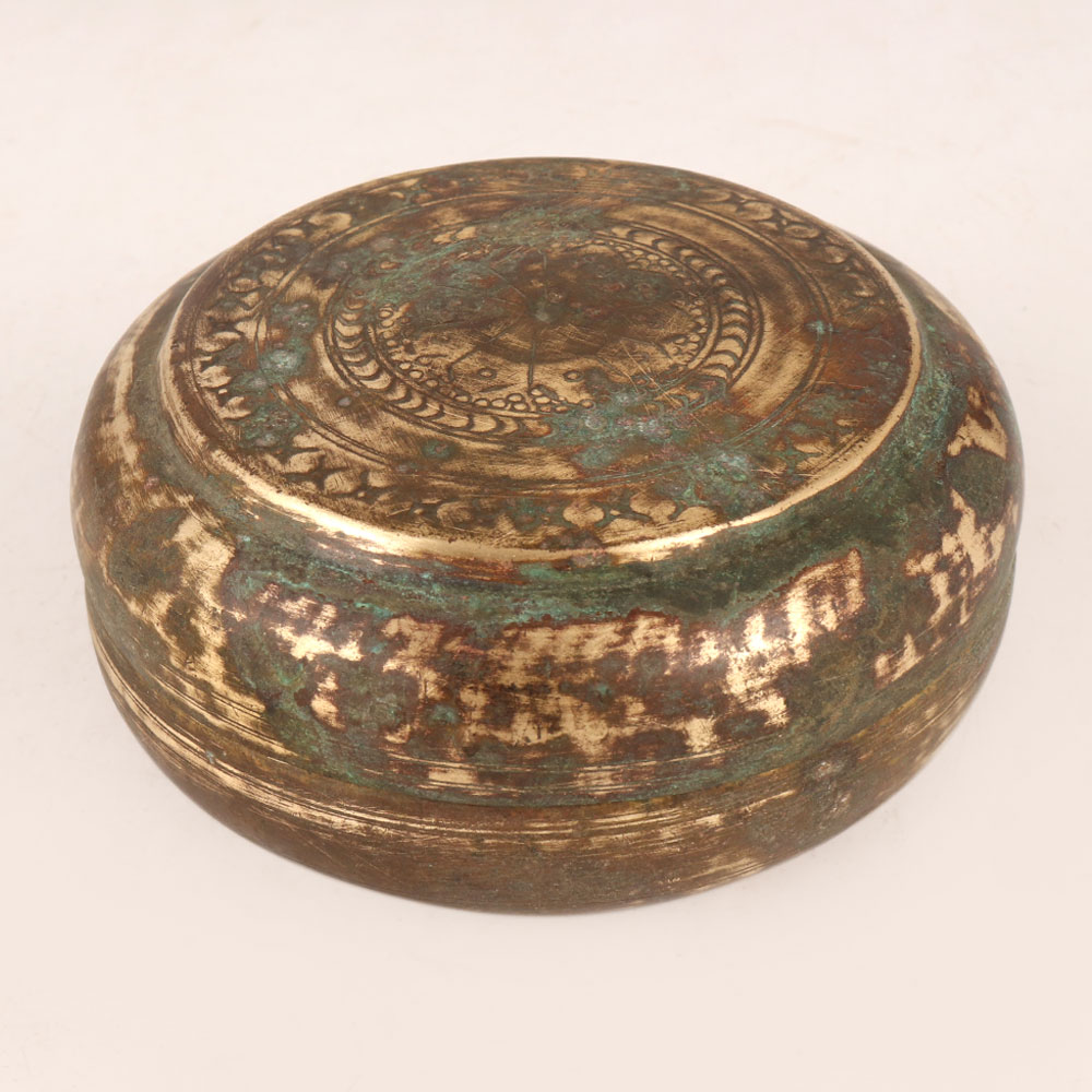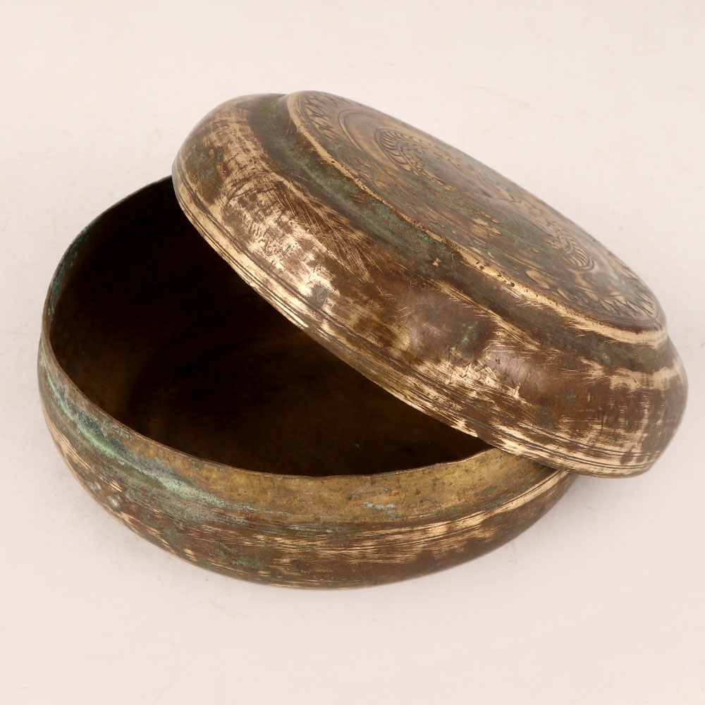 Adorn your home interior with our exquisite Vintage Brass Sindoor (vermilion) Box in an alluring antique brown finish. Crafted with meticulous attention to detail by highly skilled and experienced artisans from the vibrant region of Rajasthan, India, this ornate piece encapsulates centuries of traditional craftsmanship. The Sindoor box, a symbol of devotion and tradition, is a quintessential accessory for prayer rituals. Its intricate design and vintage appeal make it a remarkable addition to any setting. Grace your home, office, restaurant, hotel, cafe, or shop's prayer room with this splendid piece that exudes reverence and charm. Handmade using time-honoured techniques, this Sindoor box not only serves as a functional item to store sindoor, but also as a captivating decorative artefact. Its rich history and cultural significance blend seamlessly with modern spaces, offering a sense of timeless elegance. Ideal for collectors, this box can be a treasured addition to your vintage collection, reflecting the artistry of a bygone era. It also makes for a thoughtful gift on special, festive, or auspicious occasions, allowing you to share the beauty of Indian craftsmanship with your family, friends or relatives. Immerse yourself in the heritage of Rajasthan as you embrace the spiritual and aesthetic allure of this Vintage Brass Sindoor Box, celebrating tradition, artistry, and devotion in one harmonious creation.