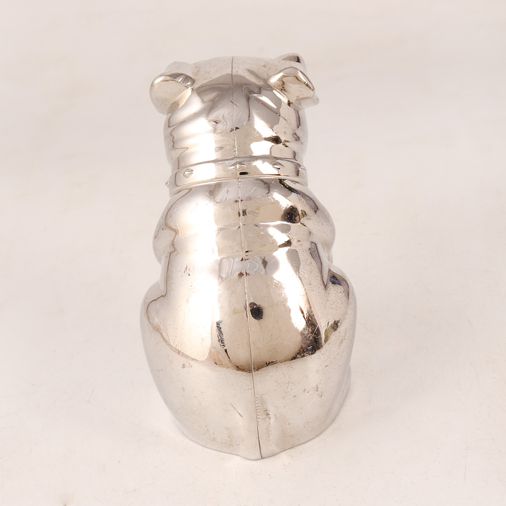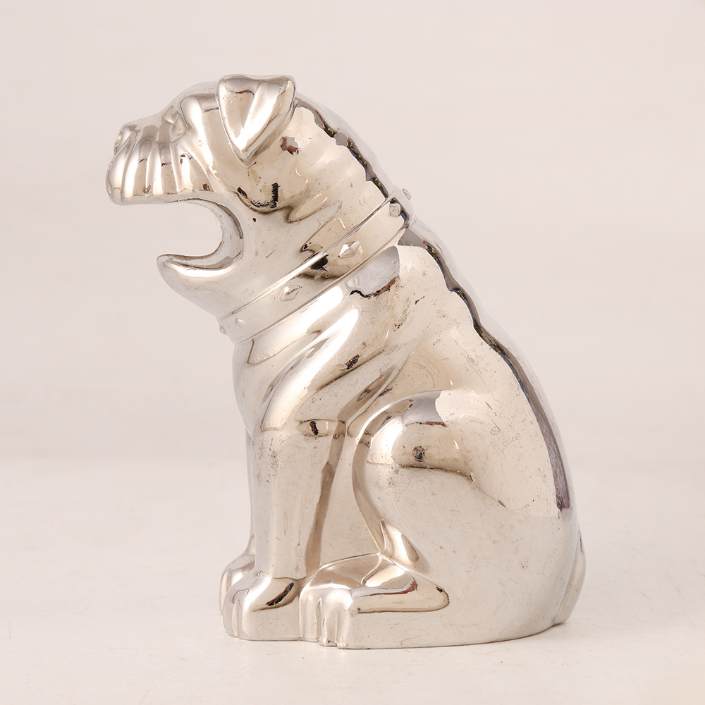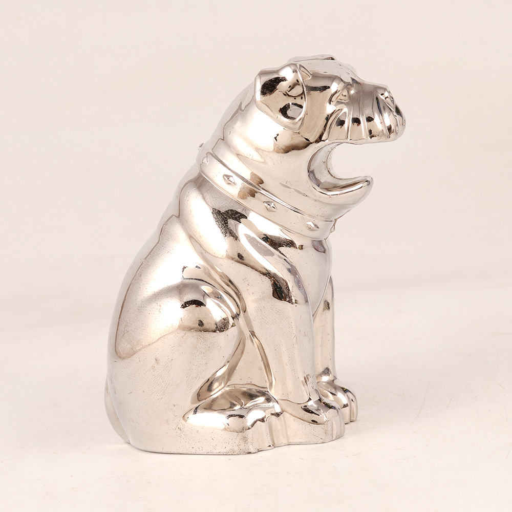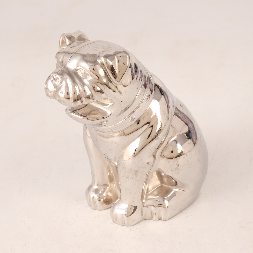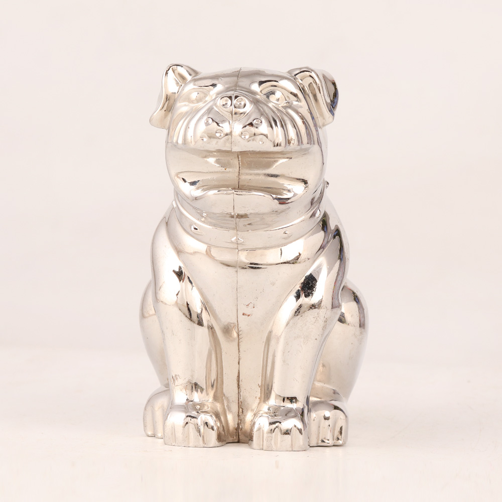 Buy a Small Metal Dog Statue in a sitting position which is a captivating piece of art that seamlessly blends timeless beauty with contemporary allure. Meticulously handcrafted by talented craftsmen, this exquisite creation showcases their artistry and dedication to detail. Crafted from premium quality metal, its shiny silver finish exudes a lustrous charm that effortlessly catches the eye. Versatility defines this enchanting statue, making it a delightful addition to any space. Whether adorning the living room at home, enhancing the ambiance in an office, gracing a shop, restaurant, or hotel, this statue brings sophistication to any setting. Embracing its versatility, it also finds its place in vintage collections, museums, or exhibitions, adding a touch of history to any display. As an extraordinary gift option, this mesmerizing metal dog statue becomes a symbol of love and appreciation, perfect for presenting to your cherished ones on special or festive occasions. Imbued with artistic finesse and a timeless appeal, this small metal dog statue is a masterpiece that will be cherished for generations to come.