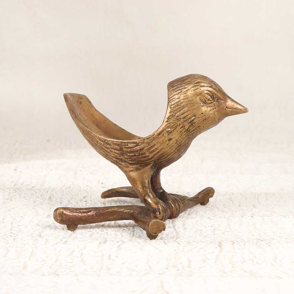 Let this vintage-style brass bird trinket bowl become your home's new favorite treasure. An elegant songbird perches gracefully on the rim, waiting to hold your precious keepsakes. With its finely wrought detailing and antique patina, this decorative bowl evokes treasured heirlooms. Place it in your bedroom to hold rings, earrings, and necklaces. Or display it in your entryway to collect keys, coins, and daily essentials. The vintage bird design adds a touch of old-world romance and charm to any space. For lovers of all things vintage, this ornate brass trinket bowl makes a stunning addition to your home. The handsome brass bird keeps watch over your prized possessions, bringing artful style and a glimpse of times past.