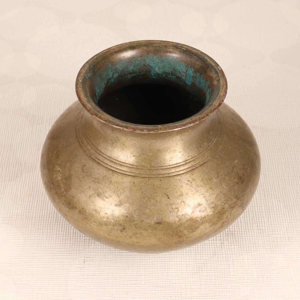 Elevate your worship space with this authentic vintage brass holy water pot handcrafted in South India. With its unembellished traditional design, this pot brings an air of simplicity and serenity to puja and prayer. In your home mandir or altar, this holy water pot provides a meaningful focal point for contemplation and connection. The matte, earthy brass finish contributes a grounded, somber energy perfect for spiritual reflection. Its minimalist elegance harmonizes beautifully with any décor. During special ceremonies, place this pot near the entrance to purify guests with water or grab the handle to pass around. Its vintage character represents India's rich cultural heritage, making it a unique puja room accessory. Give your rituals a touch of tradition with this handcrafted brass pot. A wonderful gift for Indian weddings and religious celebrations, it will be cherished for generations.