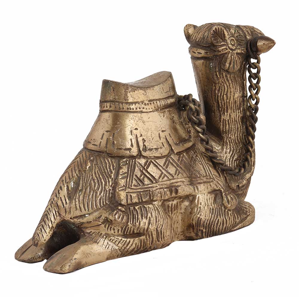 This exquisite brass statue of a camel resting after a long day has detailed carvings that make it look very realistic and unusual. It is the ideal diwali, wedding, new year, housewarming gift.