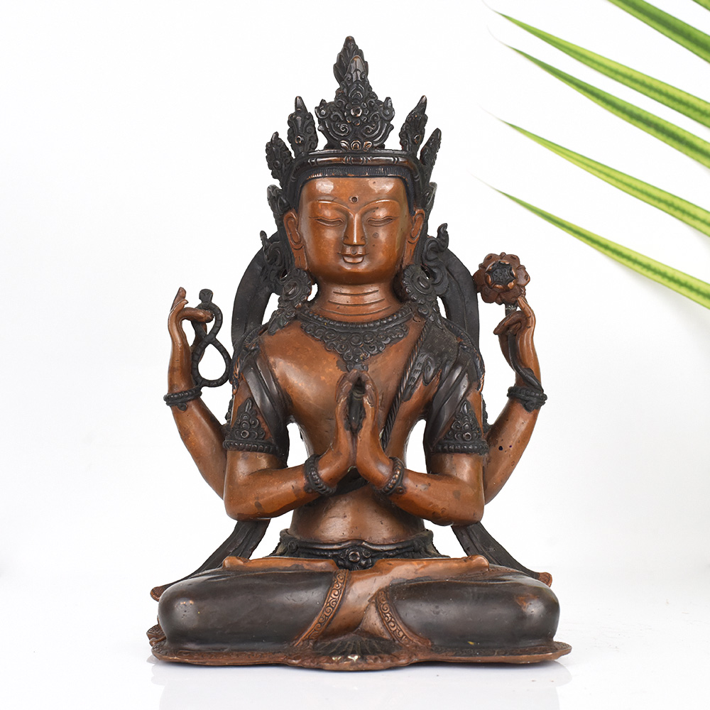 - Handcrafted Tibetan Buddhist statue of the compassionate deity Chenrezig