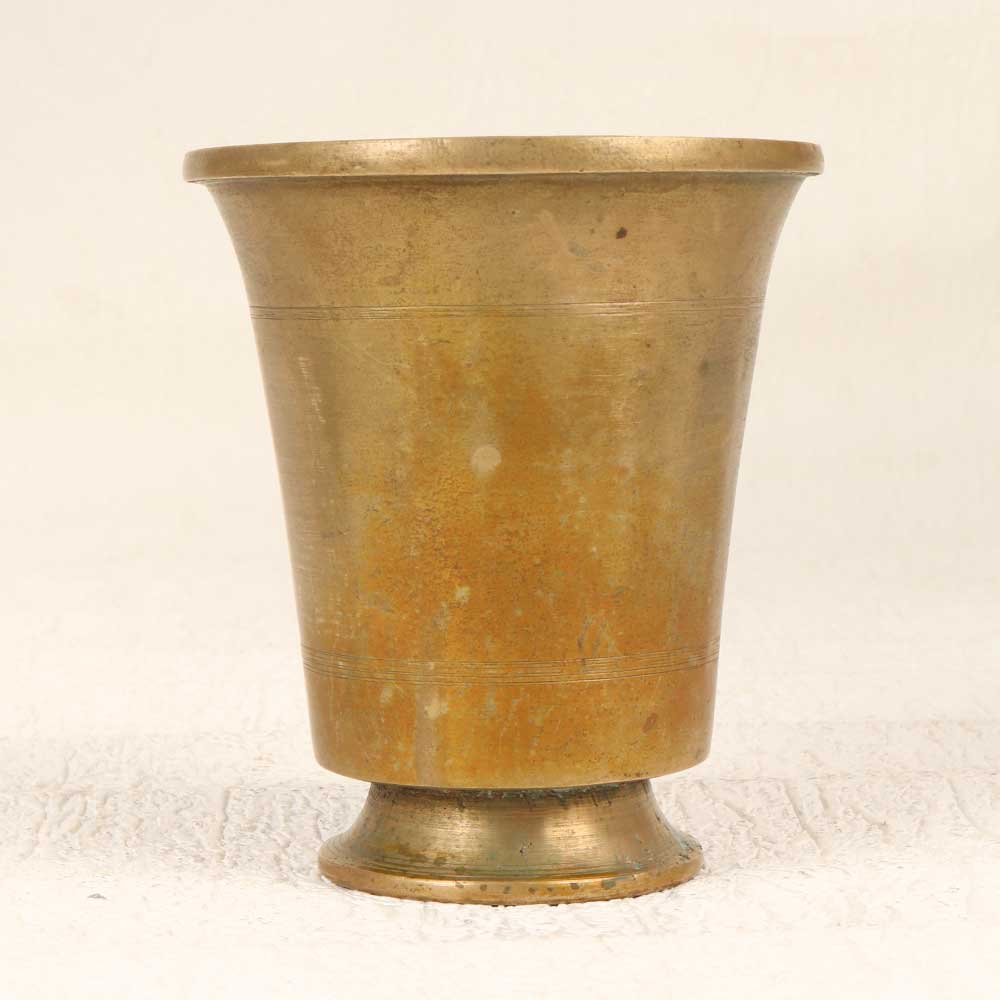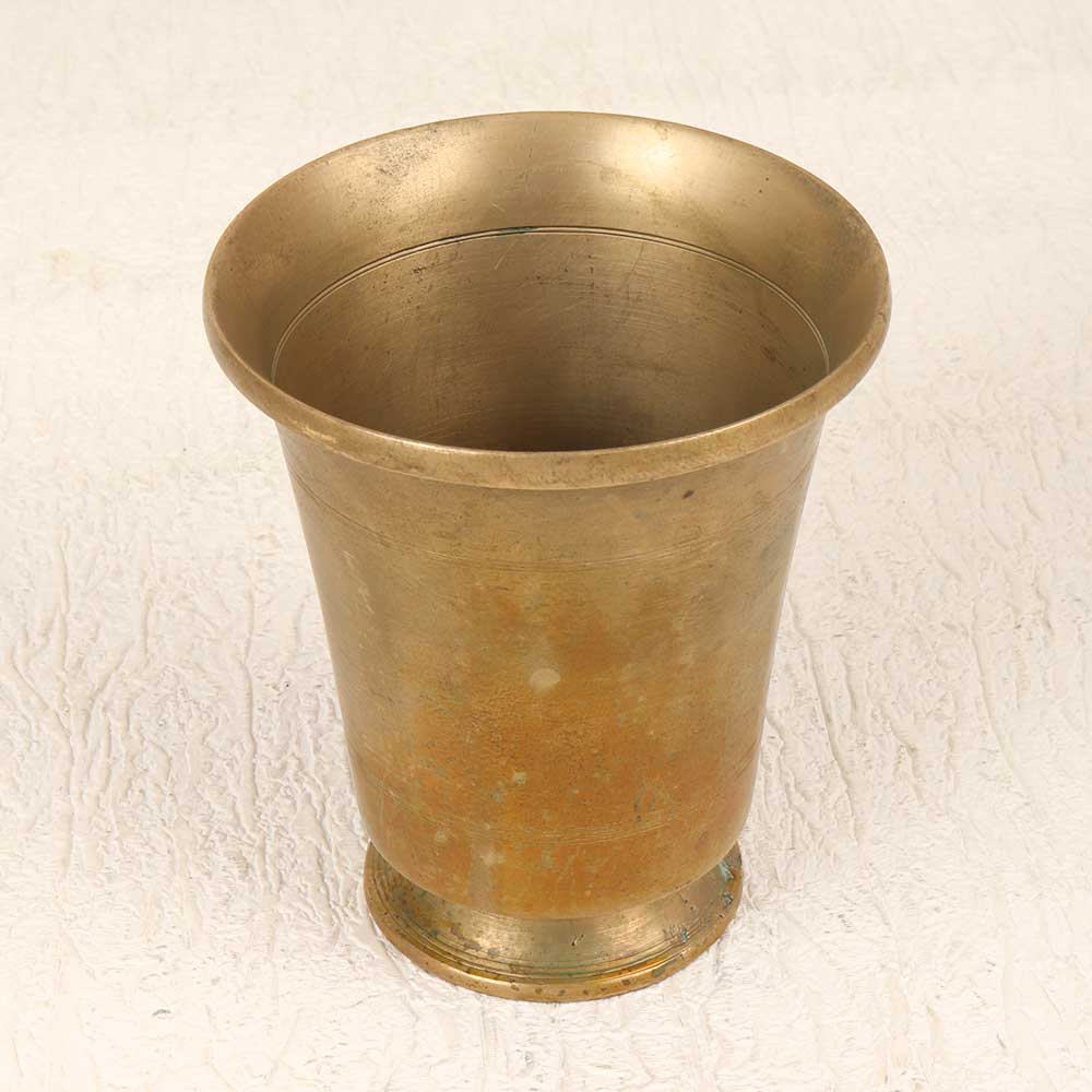 Immerse yourself in old-world charm with this antique brass Panchpatra Water Pot. Its vintage design reflects the rich artistic tradition of South India. With its earthy patina and delicate craftsmanship, this brass Panchpatra pot brings an air of antiquity to your home decor. Place it on your altar or in the puja room to uplift your rituals and connect with ancient culture. The smooth, cool brass feels delightful to touch during meditation or prayers. Let this vintage pot transport your home to another time. Its sacred form and artisanal origins make it a meaningful addition to any spiritual space.