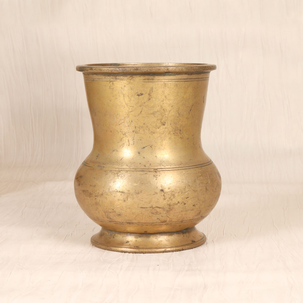 Immerse yourself in the timeless traditions of South Indian art with this stunning vintage brass holy water pot. Crafted with meticulous attention to detail, this captivating vessel will elevate your spiritual practice and infuse your sacred space with a sense of reverence. More than just a functional object, this holy water pot is a work of art that invites you to explore the mysteries of the sacred. Imagine the feeling of pouring blessed water over your hands, cleansing your aura and centering your mind for meditation. Or use it to anoint sacred objects, infusing them with the power of your intentions. Whether you're a devout practitioner or simply seeking to cultivate more mindfulness in your daily life, this vintage brass treasure will become an indispensable part of your rituals. Its beauty and utility will elevate your experience, reminding you of the sacredness that permeates every moment. Invite this timeless piece into your home and let it inspire your spiritual journey.