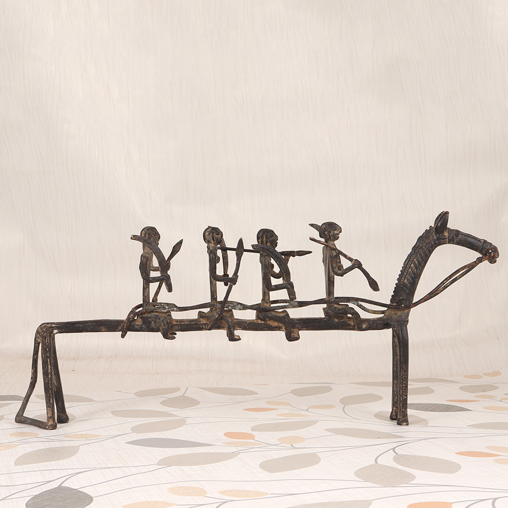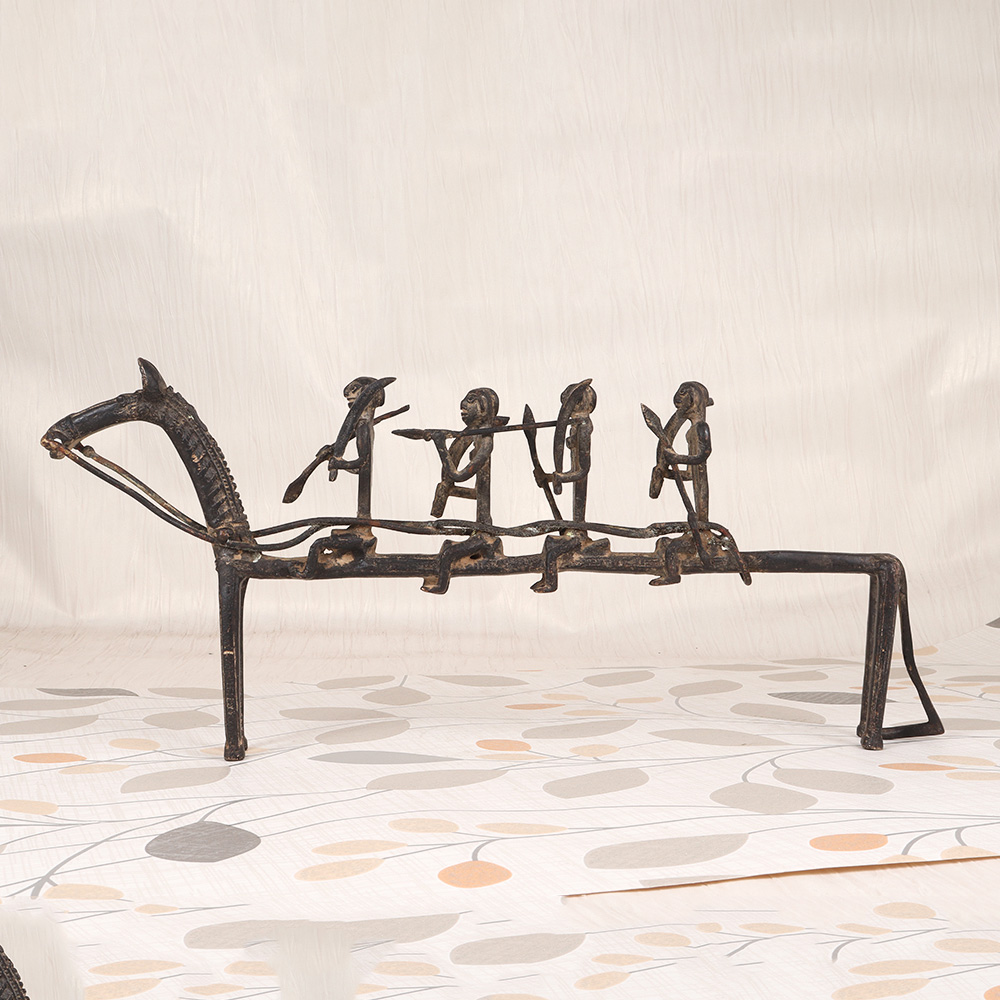 Unleash the power of the ancient tribes with the Vintage Brass Tribal Long Horse with Four Warriors. This captivating piece is a true work of art, crafted with meticulous attention to detail to transport you to a bygone era of exploration, bravery, and unparalleled craftsmanship. This Tribal Long Horse isn't just a decoration - it's a gateway to a world of rich cultural heritage and captivating storytelling. Imagine the battles it has witnessed, the journeys it has undertaken, the legends it has the power to inspire. With this stunning piece in your home, you'll be surrounded by the spirit of the ancient tribes, their strength and resilience forever etched in brass. Whether you're a seasoned collector or simply seeking to add a touch of global flair to your decor, the Vintage Brass Tribal Long Horse with Four Warriors is a must-have. Elevate your living space and ignite your imagination with this truly remarkable, conversation-starting centerpiece.