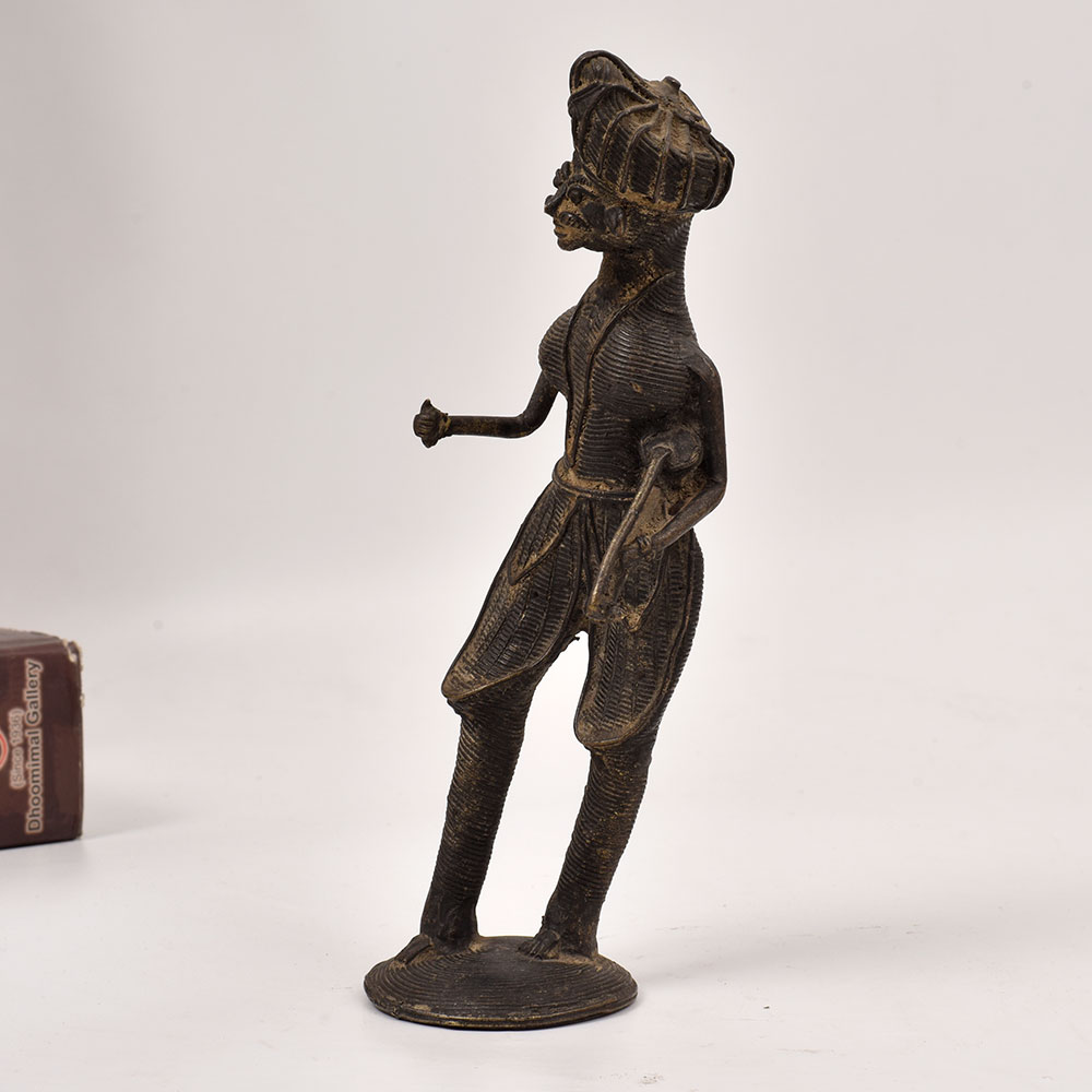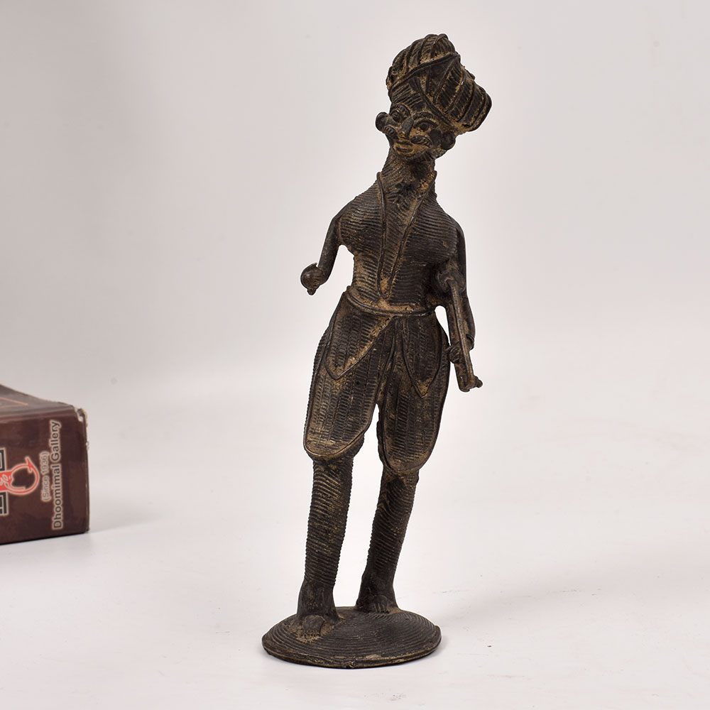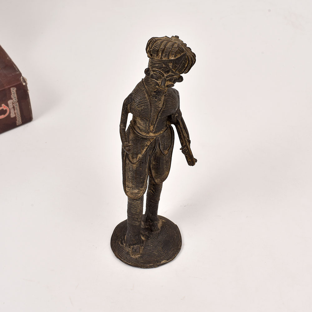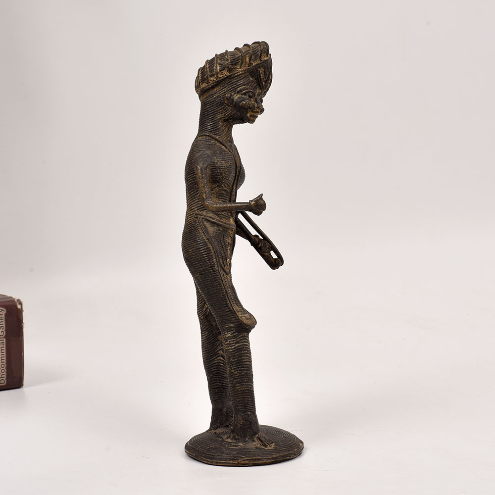 Immerse yourself in the captivating world of Odisha's tribal culture with this stunning brass statue of a musician man playing the sarangi instrument. Crafted with meticulous attention to detail by skilled artisans, this piece is a true masterpiece of tribal art. This brass statue is more than just a decorative piece - it's a celebration of Odisha's vibrant musical traditions. The musician's expressive pose and the intricate detailing of the sarangi instrument evoke a sense of rhythmic energy and cultural authenticity. Display this stunning work of art in your living room, office, or any space that needs a touch of tribal elegance and artistic flair. Elevate your home décor and immerse yourself in the captivating essence of Odisha's tribal art with this remarkable brass statue. Let the rhythmic allure of the sarangi transport you to a world of rich cultural heritage and artistic excellence.