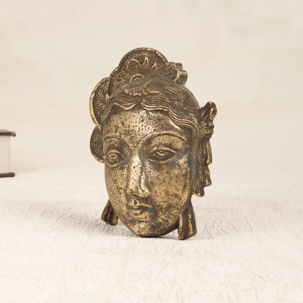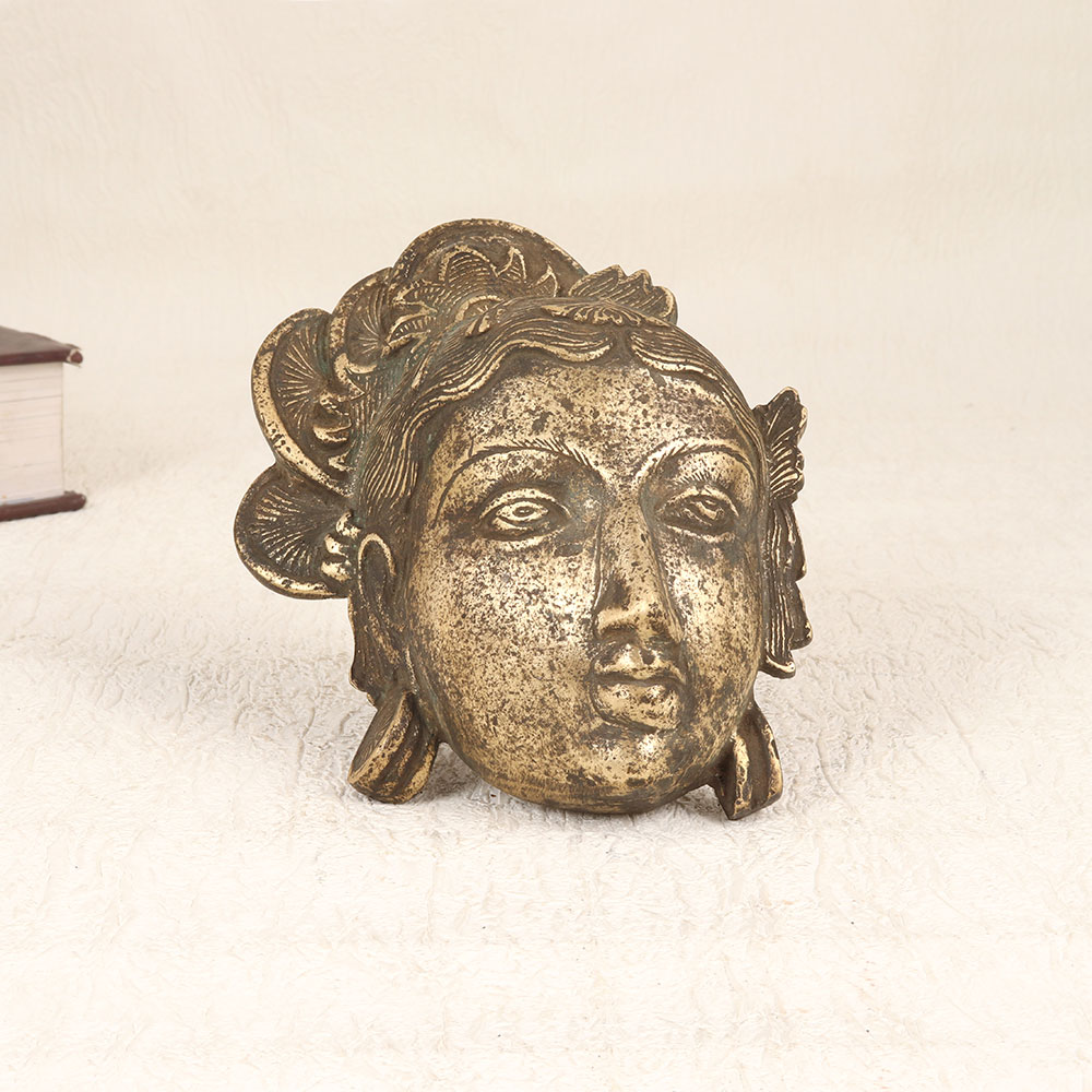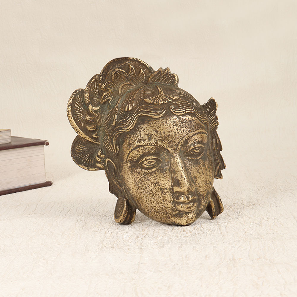 Enhance the timeless allure of divine craftsmanship with our Vintage Brass Goddess Parvati Head Plate. Meticulously handcrafted by skilled Indian artisans, this exquisite piece exudes elegance and spiritual significance. The head plate features a captivating antique brown finish that adds a touch of vintage charm, elevating its aesthetic appeal. Forged from high-quality brass, the plate radiates authenticity and durability. Its intricate detailing pays homage to the sacred goddess Parvati, capturing the essence of Indian spirituality. Versatile in its application, this masterpiece seamlessly transitions between various settings, be it your home, office, restaurant, hotel, or cafe prayer room. Beyond its spiritual significance, the plate serves as a striking decor element, enriching any space with its cultural and artistic resonance. This collector's item is a treasure for enthusiasts passionate about vintage artefacts. Gift it to your family, friends or relatives on special, festive, or auspicious occasions, sharing not just a beautiful piece but also the rich cultural heritage it represents. The Vintage Brass Goddess Parvati Head Plate is more than an object; it is a testament to the enduring craftsmanship that transcends time and tradition.