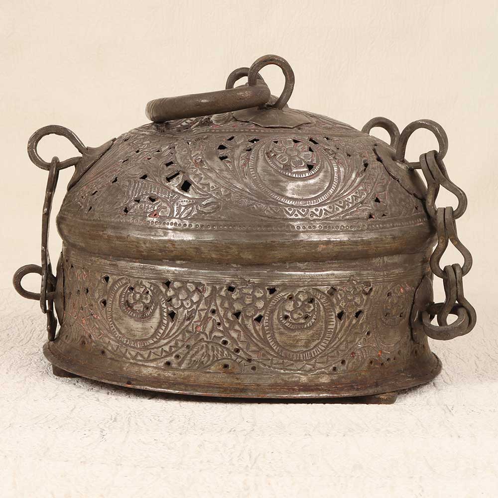 Step into the opulent world of Mughal nobility with this antique-styled Vintage Paan Daan. Hand-engraved with ornate Islamic motifs, this brass betel leaf container evokes the grandeur of royal courts. Intricate patterns dance across its surface - swirling vines, geometric shapes, and delicate florals reflect masterful Islamic artistry. Its vintage patina lends an air of having witnessed centuries of ceremonial paan serving and enjoyment. This is no ordinary Paan Daan - it is a portal to the past. Offer paan to your guests in regal style and watch their delight as they enjoy paan the traditional way. Savor mindful, unhurried pleasure with a royal touch. For history buffs and paan lovers, this Vintage Paan Daan is a must-have. Let it spark nostalgic conversations as you transport yourselves back to the days of emperors and nobility through this sophisticated, sensory experience.