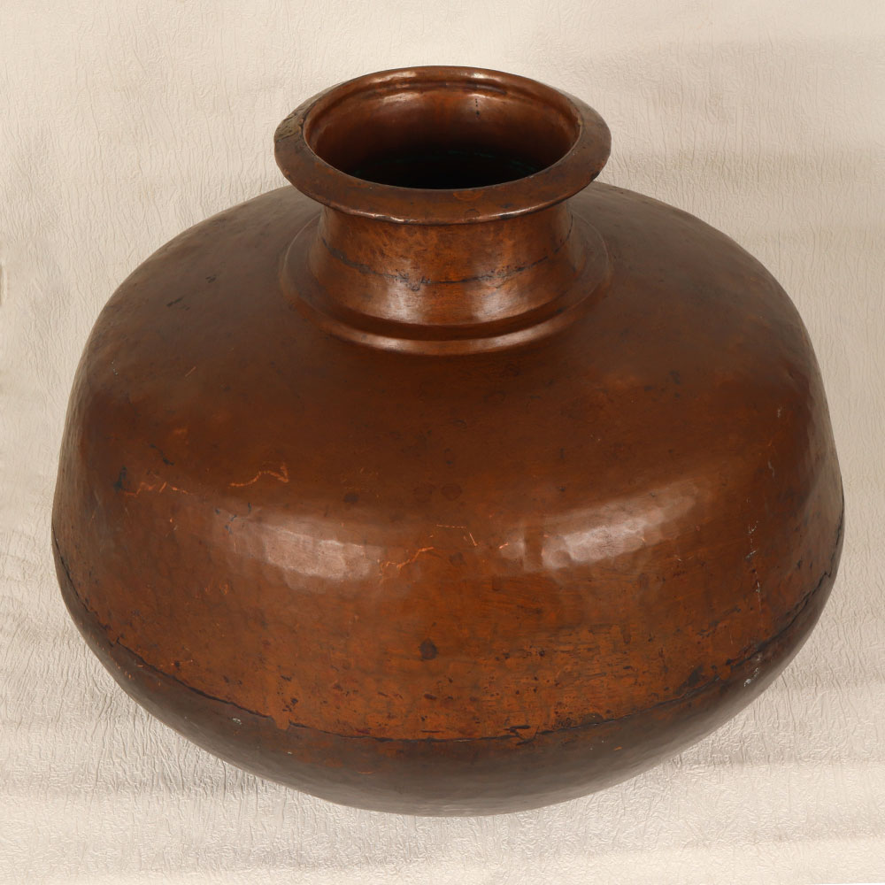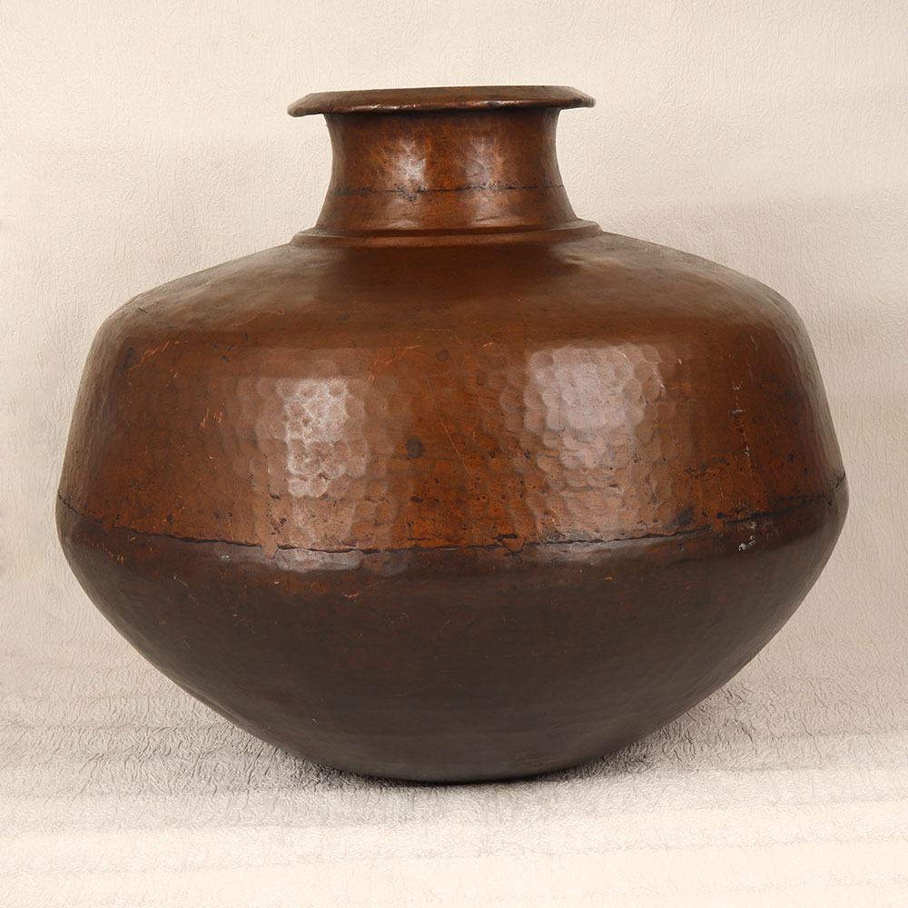 A Vintage Copper Water Pot with Nickel Plating which is a testament to the timeless beauty of Islamic Art crafted by highly talented Indian artisans. Handmade with precision and care, this unique piece showcases a small-mouthed design adorned with intricate hammered patterns, evoking the charm of a bygone era. Constructed from high-quality copper and elegantly plated with nickel, the pot exudes a lustrous antique brown finish, adding warmth and sophistication to any space. Its versatile design allows it to seamlessly integrate into various settings, making it a perfect addition to homes, offices, restaurants, hotels, or cafes. This multi-functional masterpiece serves as more than just a decor item; it doubles as an indoor flower pot, infusing nature's beauty into your surroundings. The pot's undeniable vintage appeal makes it a coveted item for collectors, while its cultural roots and meticulous craftsmanship make it an ideal gift for your family, friends or relatives on special, festive, or auspicious occasions. Embrace the artistry of the past with this Vintage Copper Water Pot, a symbol of heritage and elegance that transcends time.