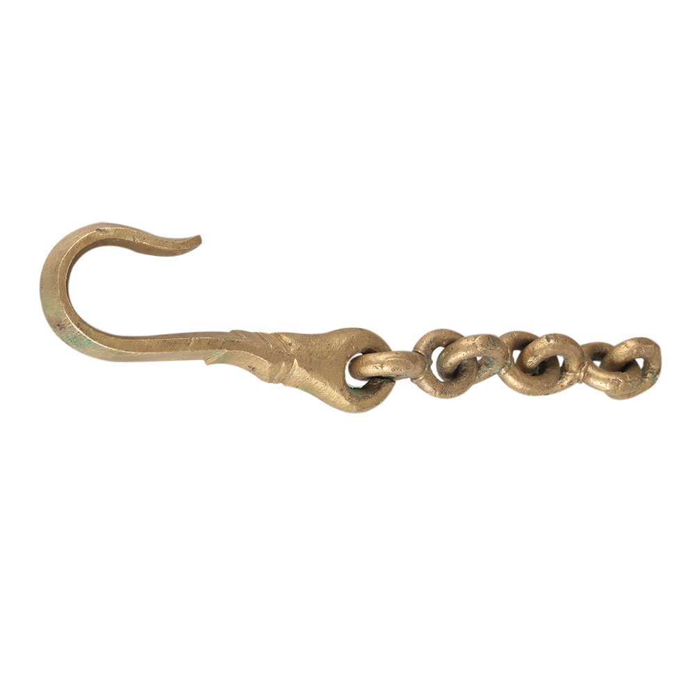 A vintage oil lamp to hand with a chain is carved from brass metal alloy. It was handmade by skilled Indian workers in South Indian art. It has a golden colour look with shiny finish. It has a chain and a hook to hang it. It was used as an oil lamp in homes when the power went out. Enhance your home decor with this charming oil lamp. Hang it in your home temple and use it as an oil lamp. Ideal to collect, decorate and give to your loved ones.