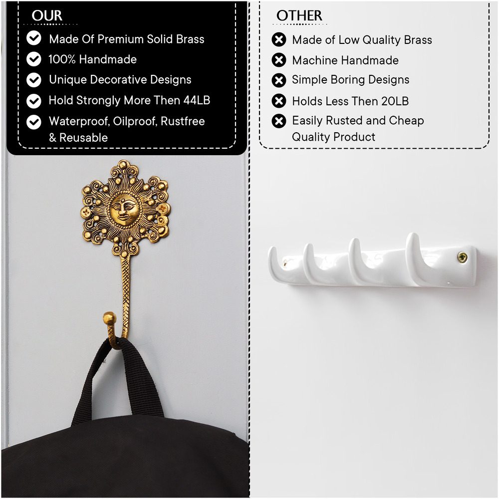 Beyond its practical use as a wall hook, the sun god face introduces an artistic element that can enhance any wall. Ideal for those who appreciate unique, handcrafted pieces, this hook brings both charm and functionality to your home.