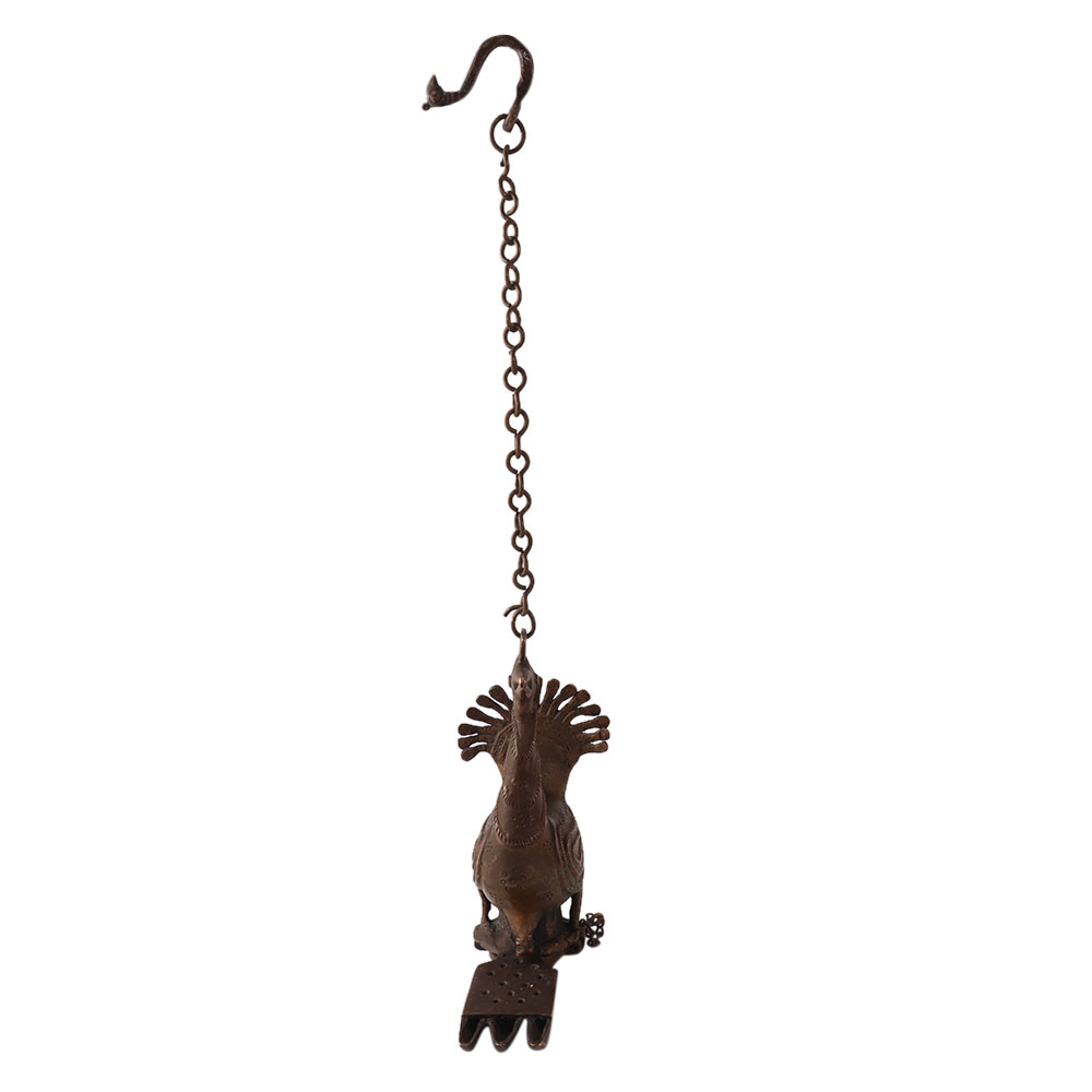 A brilliant peacock lamp with a chain to hang in your prayer room or on your patio to add charm to your home decor. This elegant lamp is carved from brass in South Indian art and adds an aesthetic look to your home, office and restaurant. 3 Jyots can be lit simultaneously with mustard oil or desi ghee and the cotton wick. It is engraved with beautiful designs which makes it an eye catcher for your guests. Hang it in your prayer room or use it in spiritual places as an arti lamp. A perfect gift for New Year, spiritual occasions, birthday or housewarming for your friends, family and relatives.