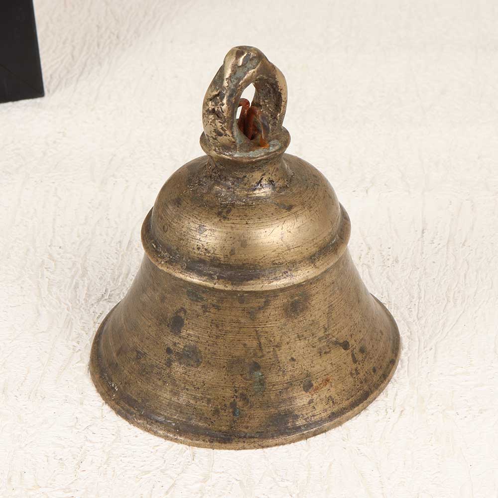 Step back in time with the crisp, resonant tones of this vintage bell metal temple bell. Crafted in India's Himachal region, this beautifully plain bell creates an ambiance of tranquility. The rich tones of this temple bell will transport you to centuries past. Bell metal provides a crisp, resonant sound when rung that differs from modern bells. With its plain design, nothing detracts from the soothing acoustics. The brown finish adds to the vintage look. In meditation spaces, spiritual areas, or anywhere a peaceful atmosphere is desired, this bell creates a sense of calm. The vintage styling with aged finish evokes a sense of history and tradition. Simply hang it up and ring gently to benefit from its relaxing tones. Let this bell metal temple bell take your space back in time.
