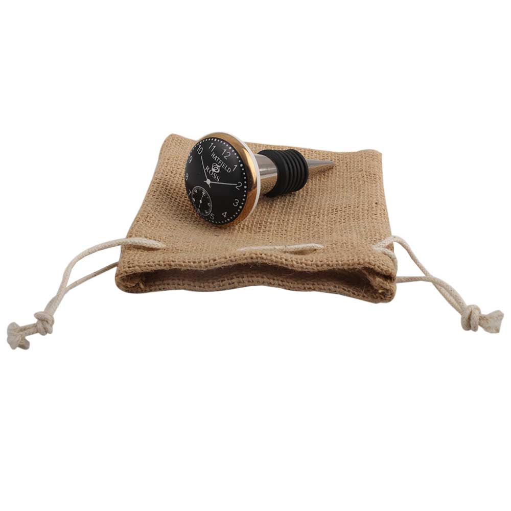 Hatfield Ross Ceramic Watch Wine Stopper.zinc alloy wine bottle stopper with attractive Jute Bag Packaging.