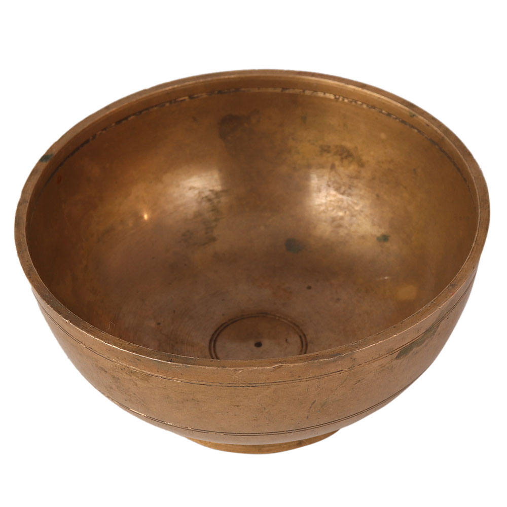 An Indian traditional holy bowl with a heavy weight for home decoration. It has a thick layer and is made of brass metal alloy. It is used in Hindu temples to apply Kumkum Tilak on the forehead of the devotees. Use it to decorate the reception in restaurant, hotel or office. Place it in your temple at home.