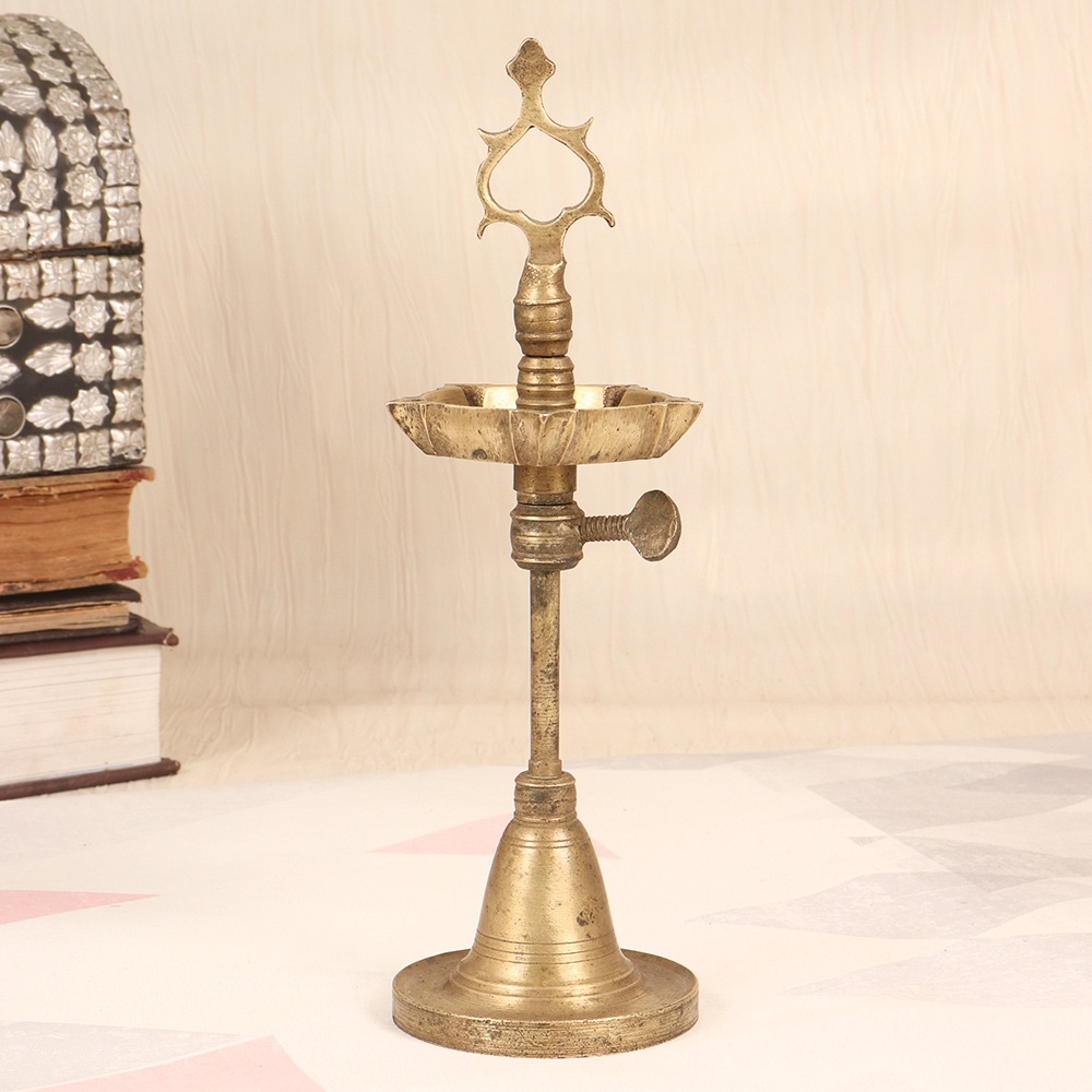 Bask in the timeless allure of our Vintage Brass Oil Lamp, a mesmerizing centerpiece that brings the rich cultural heritage of South India into your home. Crafted with meticulous attention to detail, this lamp is a true work of art, destined to become a treasured heirloom. The gentle, flickering glow of this oil lamp creates a serene and inviting ambiance, perfect for setting the mood for meditation, relaxation, or intimate gatherings. As the flame dances, it casts a warm, soothing light that can't be replicated by modern lighting fixtures. This lamp is more than just a source of illumination - it's a timeless piece that will elevate the aesthetic of any space, from cozy living rooms to tranquil meditation corners. Whether you're looking to add a touch of elegance to your decor or seeking a captivating focal point, the Vintage Brass Oil Lamp is sure to impress and delight.