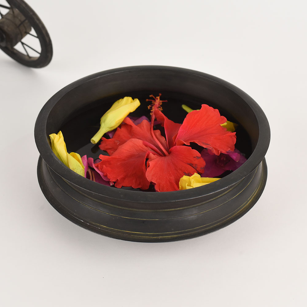 Inspired by the floral motifs of Indian heritage, this handcrafted brass urli brings a burst of colour and tradition to your space. Designed to hold water for floating hibiscus, lotus, or marigold petals, the deep bowl has a matte finish that contrasts beautifully with vibrant blooms. Place it in your entrance, living room, or garden to create a welcoming atmosphere for guests and family. Made using age old metalworking techniques, each piece is unique, with subtle variations in tone and finish that add to its character. Use it during religious ceremonies, festivals, or daily meditation, and enjoy the soothing effect of flowers gently swaying on water. Its robust construction ensures longevity, making it a cherished decorative item for years to come.