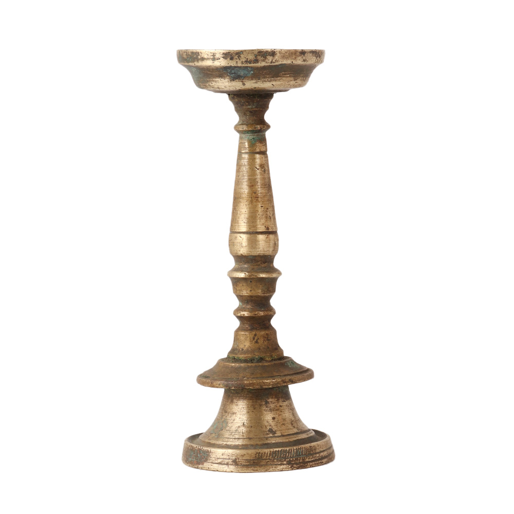A High Brass decoration pillar candle holder is a decorative piece that is designed to hold and display pillar candles. These candle holders are often made of brass, a durable and attractive material that provides a warm, golden glow when a candle is lit. They come in a variety of sizes and styles, ranging from simple, elegant designs to more intricate and ornate styles. High brass pillar candle holders are often used in the home as a way to add ambiance and a warm, inviting atmosphere to a room. They can be used in a variety of settings, including living rooms, bedrooms, and bathrooms, and are often paired with scented candles to enhance the overall experience. Whether used for practical purposes or as a decorative accent, a high brass pillar candle holder is a versatile and beautiful statue that can be enjoyed for years to come.