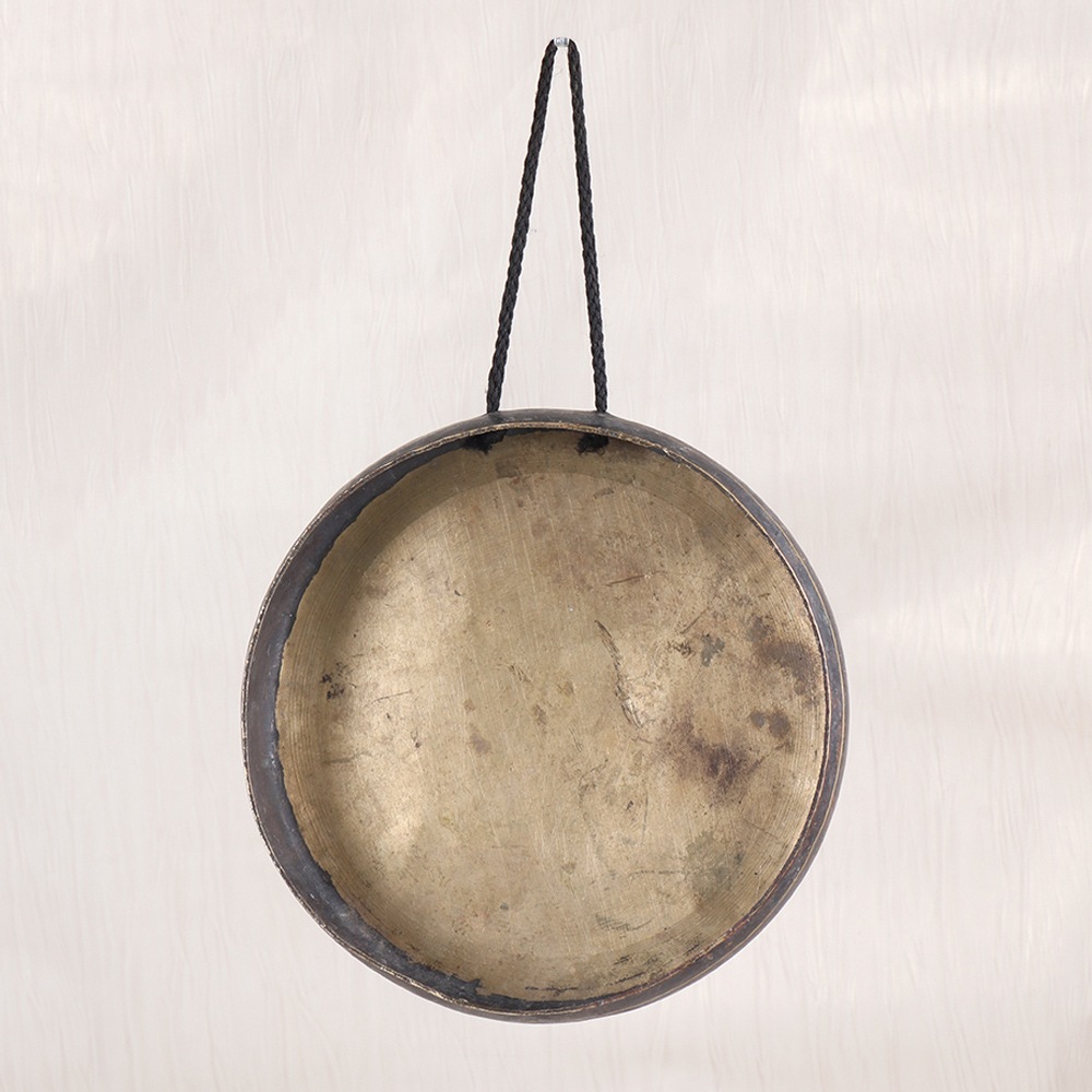 Elevate your meditation practice and immerse yourself in the captivating essence of Tibetan spirituality with this exquisite vintage bell metal gong. Forged by master artisans using centuries-old methods, this stunning piece is a testament to the enduring wisdom and craftsmanship of the Himalayan region. The gong's rich, resonant tone reverberates with the power to transport you to a realm of profound inner peace and self-reflection. As the vibrations wash over you, you'll find your mind naturally calming, your breath deepening, and your connection to the present moment strengthening. Whether you're seeking to enhance your yoga or meditation practice, create a soothing ambiance for relaxation, or simply bask in the restorative energy of ancient Tibetan traditions, this gong will elevate your experience to new heights of enlightenment. Crafted with the utmost care and attention to detail, this vintage bell metal gong is a true work of art that will become a cherished centerpiece in your home or sacred space. Its durable bronze alloy construction ensures lasting beauty and performance, making it a timeless heirloom to be passed down for generations. Immerse yourself in the enchanting resonance of the Himalayas and let this magnificent gong guide you on a journey of self-discovery and inner harmony.