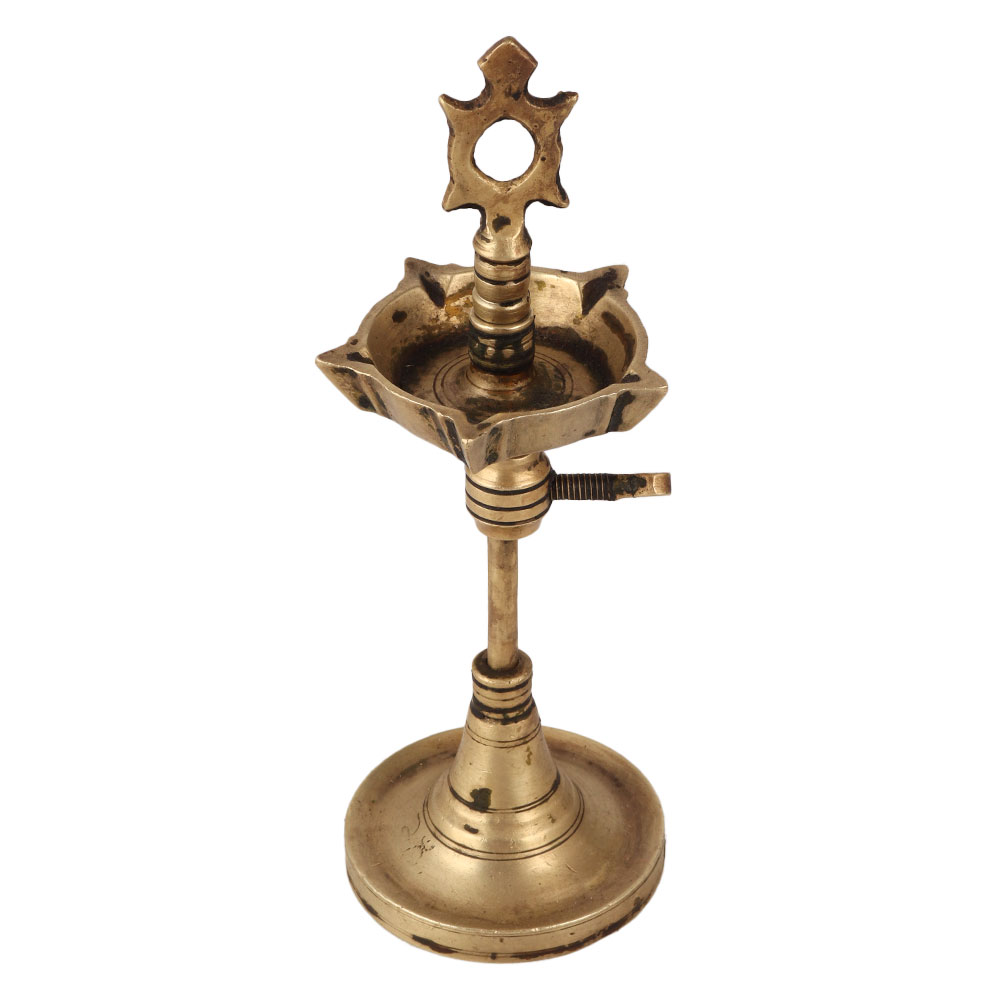 Buy a Brass Aarti Oil Lamp with 5 Jyots online which is a stunning piece that embodies the essence of traditional Indian culture. Crafted with meticulous attention to detail by skilled Indian artisans, this lamp is a testament to their craftsmanship and expertise. This remarkable oil lamp is designed to hold five jyots, allowing you to illuminate multiple wicks simultaneously. It can be filled with either mustard oil or desi ghee, creating a warm and inviting glow that spreads serenity and positive energy in any setting. The lamp's antique brown finish and high-quality brass construction make it a captivating decorative item for temples, homes, offices, or even museum displays. Its adjustable height adds versatility, enabling you to create the perfect ambiance for special or auspicious occasions. Beyond its visual appeal, the lamp holds significant cultural significance. Whether you choose to keep it for yourself or gift it to loved ones, this Brass Oil Lamp with 5 Jyots is a symbol of tradition, spirituality, and beauty, making it an incredible addition to any space or an unforgettable gift for special festive moments.