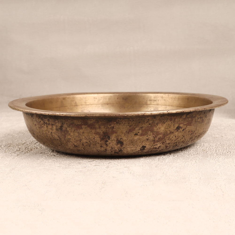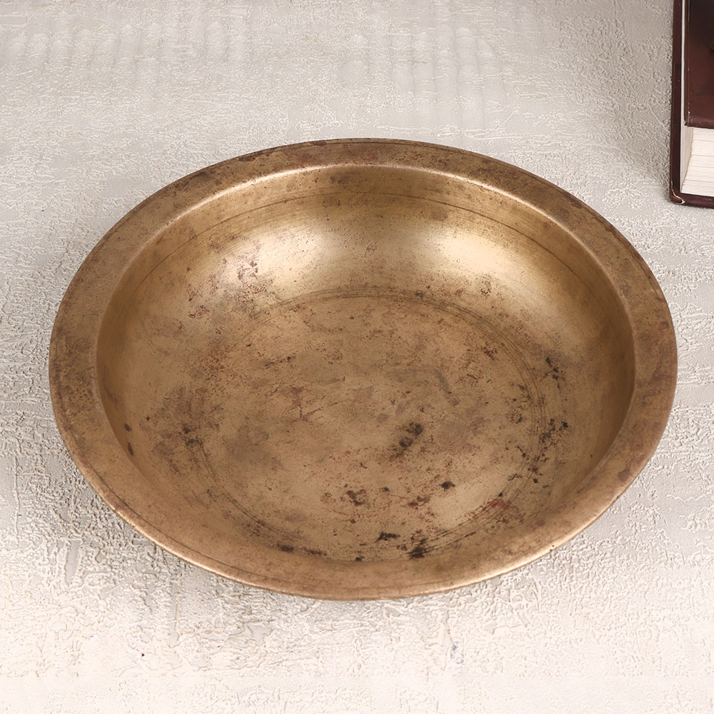 Buy an Antique Brown Brass Bowl online that is a masterpiece meticulously handcrafted by highly Indian artisans, showcasing their centuries-old craftsmanship. Fashioned from high-quality brass, this versatile bowl seamlessly transforms from a unique flower pot to a divine god's bathtub in temple settings, making it a symbol of cultural richness and spiritual elegance. The bowl boasts an antique brown finish that adds a touch of timeless sophistication, rendering it a perfect fit for a variety of settings. Whether gracing your home, office, restaurant, hotel, or cafe, this ornate piece serves as a captivating decoration, effortlessly blending classic charm with contemporary allure. Beyond its aesthetic appeal, this brass bowl is an ideal addition to any vintage collection, embodying tradition and artistry. It serves as a thoughtful and meaningful gift for your family, friends or relatives on special, festive, or auspicious occasions, symbolizing not just material beauty, but also the enduring bond of shared traditions and values. Elevate your space with the rich cultural heritage and unparalleled craftsmanship embodied in this Antique Brown Brass Bowl, a true testament to the artistry of Indian craftsmanship.