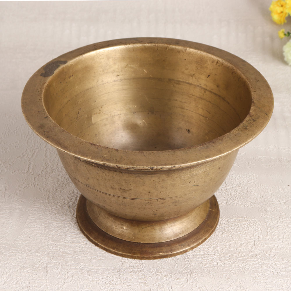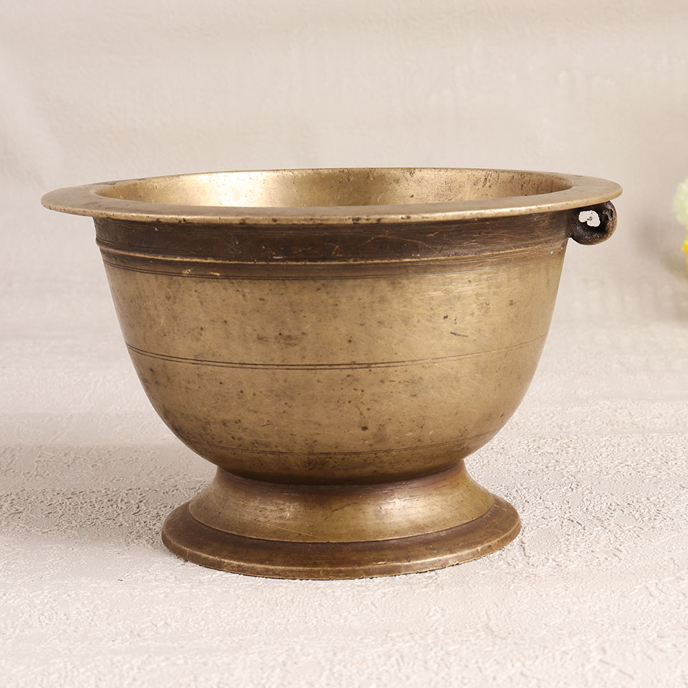 Embrace the timeless allure of a Vintage Brass Holy Pot with its exquisite antique brown finish that is a testament to the artistry of highly talented Indian artisans hailing from the southern regions of India. Crafted from premium brass, this ornate piece is a symbol of both faith and aesthetic elegance. This meticulously handmade artefact seamlessly blends tradition with sophistication. Versatile in its applications, it can grace your home, office, hotel, cafe, shop, or restaurant's prayer room. The Holy Pot is not only a symbol of devotion but can also be employed as a charming flower pot, adding an enchanting touch to your space. A unique addition to your vintage collection, it's a conversation starter, and a captivating exhibit at exhibitions. Beyond personal indulgence, it makes for an exquisite gift for your family, friends or relatives on special, festive, or auspicious occasions, imparting a sense of history and spirituality in every touch. Elevate your surroundings with this brass masterpiece, a testament to India's rich artisanal heritage and a source of timeless inspiration.