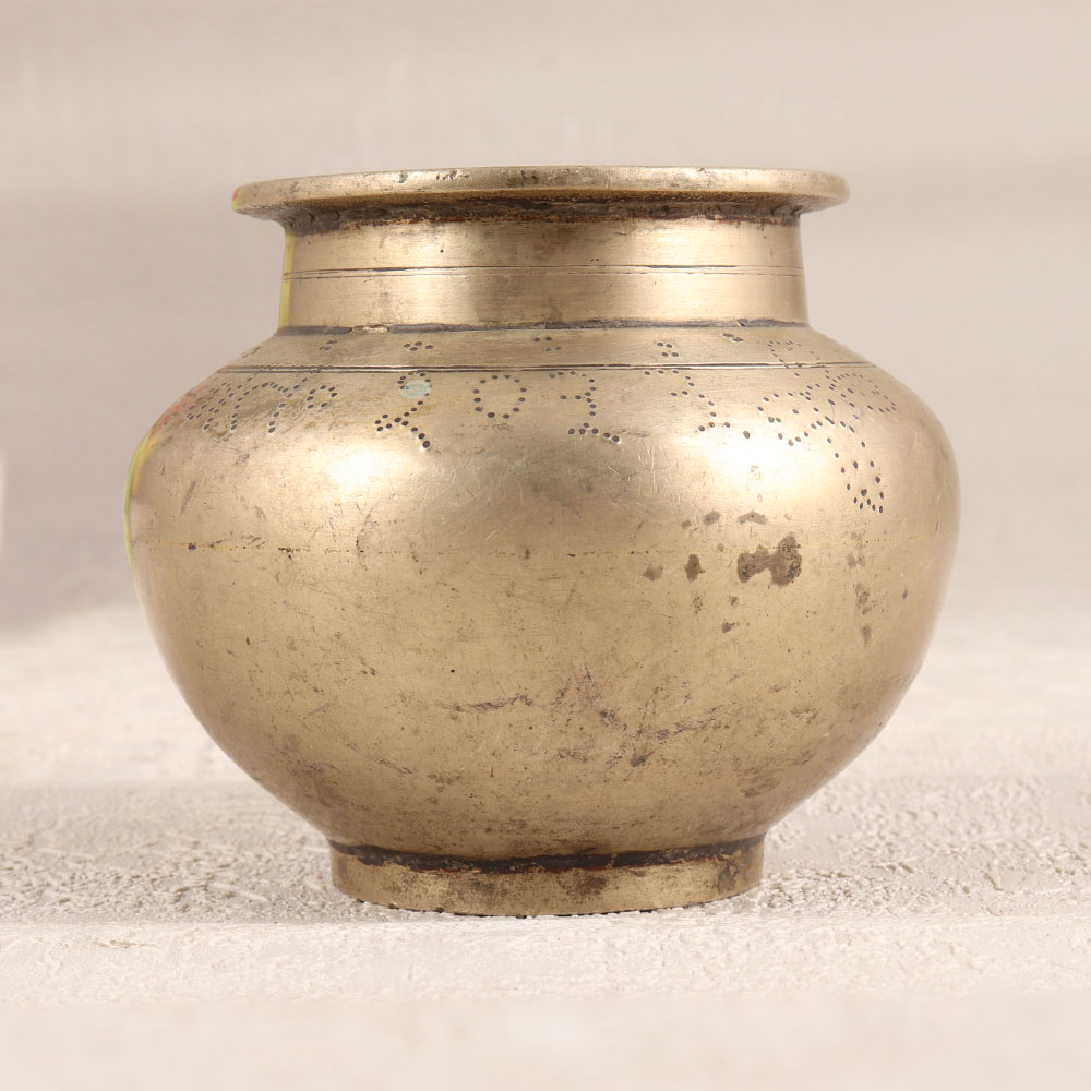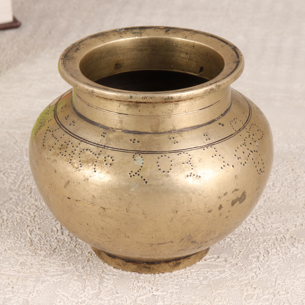 Add a touch of timeless elegance to your sacred space with our Vintage Brass Holy Water Pot. Meticulously handcrafted by highly skilled Indian artisans from Himachal, this exquisite lota exudes authenticity and charm. Crafted from high-quality Brass, its antique brown finish evokes a sense of history and reverence, making it a perfect companion for prayer, havan, and auspicious occasions. Versatile in function, the pot serves as a vessel for holy water during religious ceremonies and also doubles as a stunning receptacle for vibrant flowers, enhancing the ambiance with its classic allure. Its enduring craftsmanship and antique aesthetic make it a captivating addition to any home, office, restaurant, hotel, or cafe, serving both decorative and spiritual purposes. Whether displayed as a standalone piece or integrated into a vintage collection, this holy water pot is a unique expression of cultural heritage. Thoughtful and meaningful, it makes for an ideal gift for your family, friends or relatives on special, festive, or auspicious occasions, imparting blessings and beauty in equal measure.