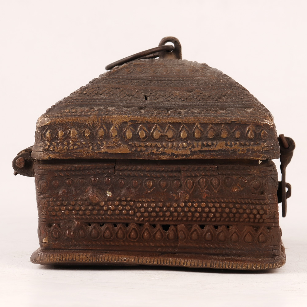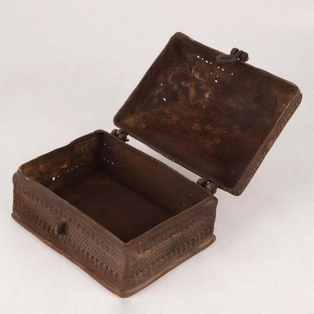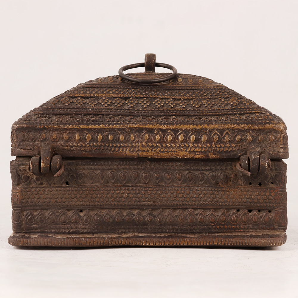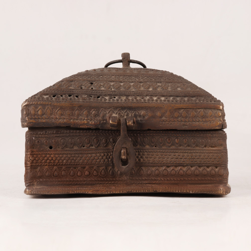 Buy a Vintage Brass Jewelry Box online that is a timeless piece of artistry and elegance. This exquisite treasure chest captures the essence of a bygone era with its stunning craftsmanship and antique brown finish. Handmade by professional Indian artisans, this jewelry box is a testament to their mastery and dedication to preserving the beauty of traditional art forms. The box features a delicate latch and a sturdy handle on the top, adding a touch of nostalgia and practicality to its design. The surface is adorned with intricate and captivating engraved patterns, which lend a captivating allure to the piece, making it a mesmerizing display item for your home, office, restaurant, hotel, cafe, or shop. Crafted from high-quality brass, this jewelry box ensures lasting durability and serves as a safe haven for your precious stones, jewellery, or coins, keeping them protected and organized. Its timeless appeal also makes it a perfect addition to vintage collections or exhibitions, while its rich allure makes it an ideal gift for loved ones on special or festive occasions. Embrace the allure of the past and cherish your valuables in this splendid Vintage Brass Jewellery Box.