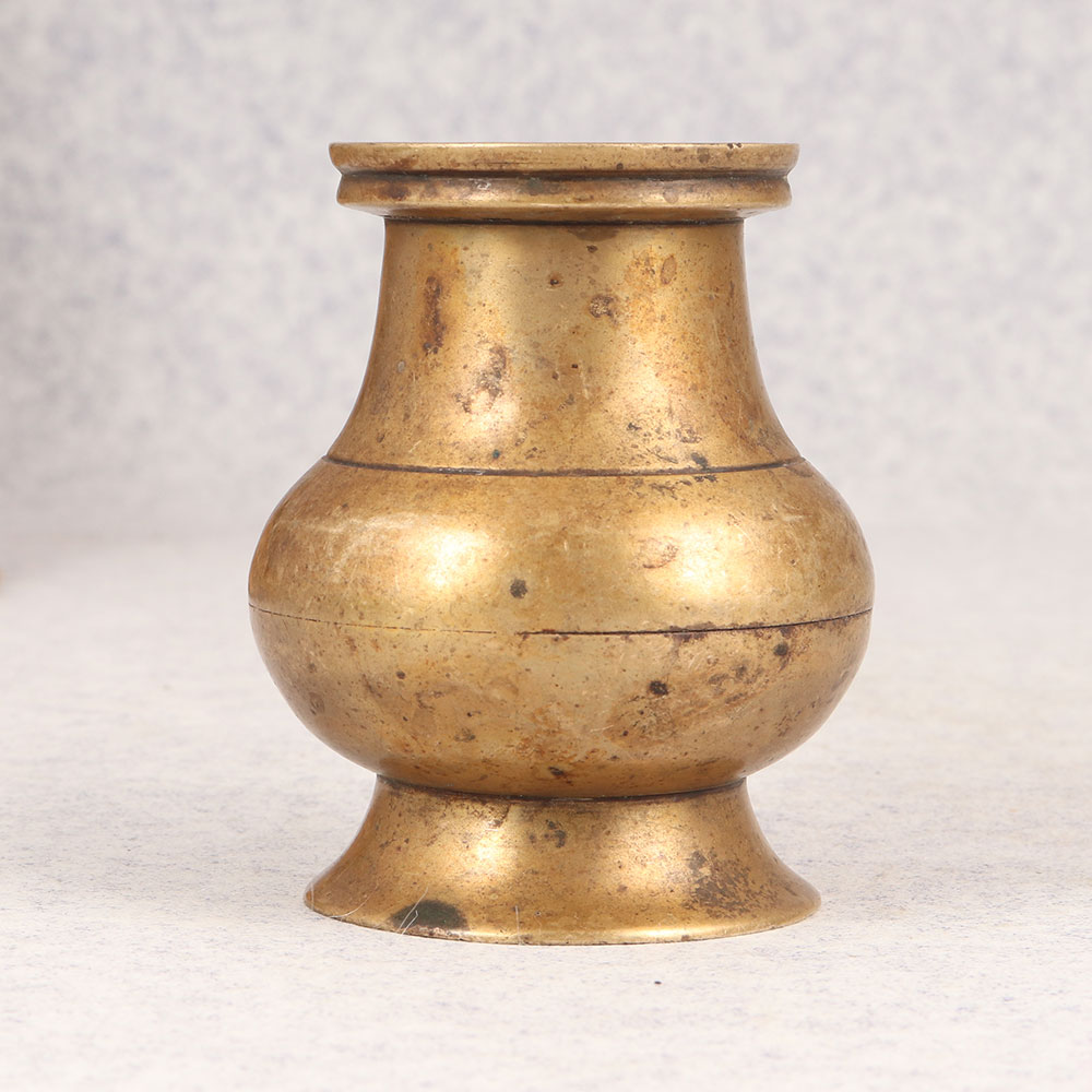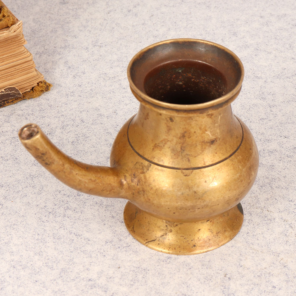 Immerse your sacred space in timeless elegance with our Vintage Brass Sagar Water Pot that is a masterpiece crafted by talented Indian artisans. This exquisite piece is handcrafted from high-quality brass and boasts an antique brown finish that adds a touch of authenticity and charm. Designed with reverence for ritual and prayer, the sagar water pot features a graceful spout that facilitates the ceremonial pouring of water, symbolizing purity and spiritual cleansing. Its vintage allure makes it a perfect addition to temple prayer rooms, seamlessly blending tradition with aesthetics. Versatile in its application, this artisanal creation finds a place of honor in homes, offices, restaurants, hotels, and cafes, bringing an air of antiquity and cultural richness to any environment. Beyond its sacred purpose, the pot serves as a captivating decorative item, enhancing the ambiance with its unique charm. For collectors of vintage treasures, this sagar water pot is a must-have, embodying the craftsmanship of a bygone era. As a thoughtful gift, it carries profound meaning, making it an ideal choice for special, festive, or auspicious occasions. Celebrate tradition and craftsmanship with this Vintage Brass Sagar Water Pot, a timeless expression of artistry and spirituality.