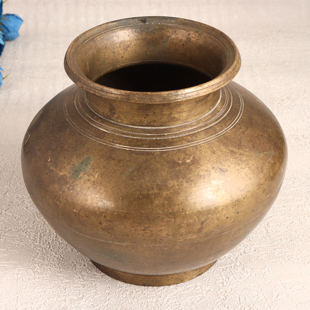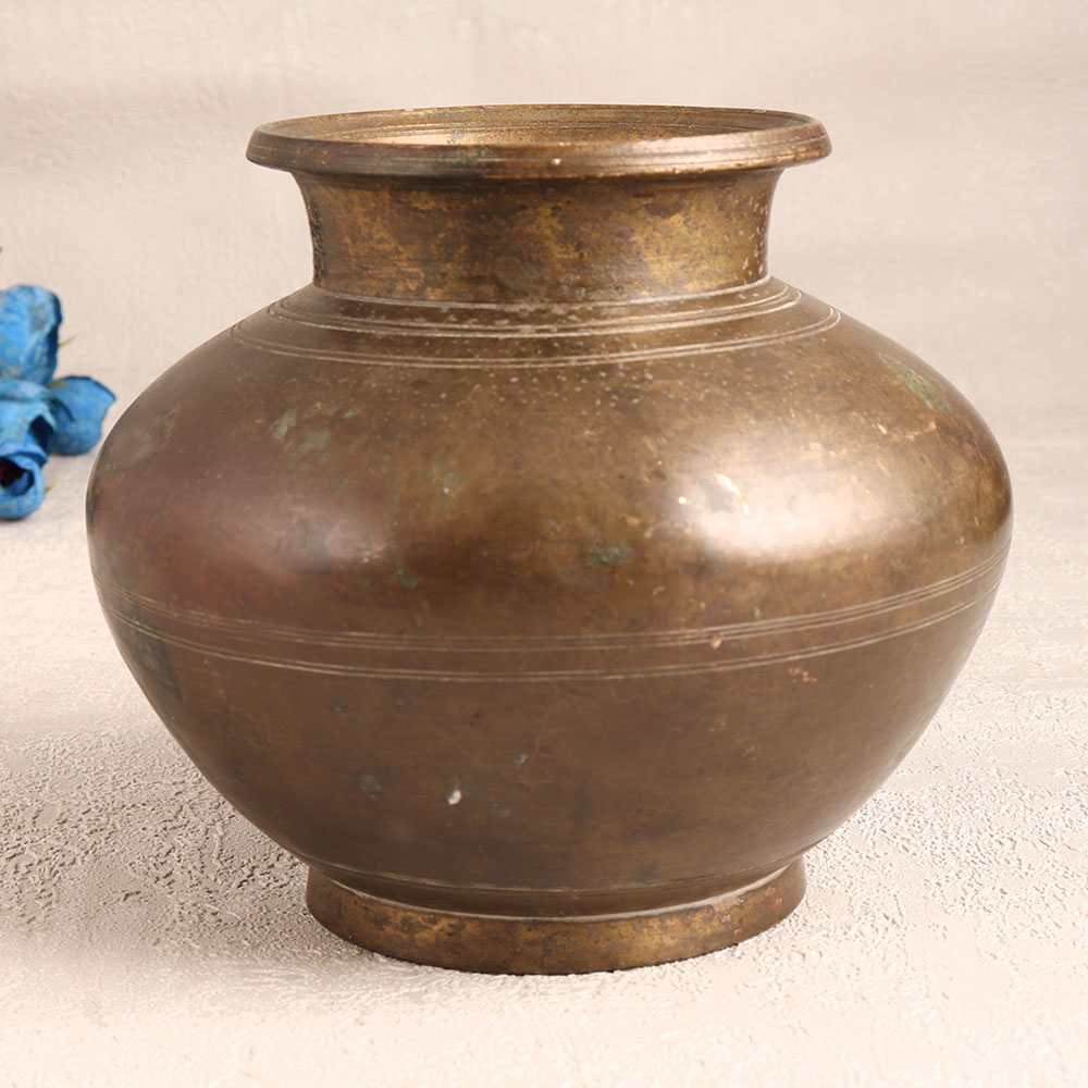 This Vintage Brass Holy Water Pot is handcrafted by highly skilled and experienced Indian artisans hailing from the heritage-rich region of Bihar. Meticulously constructed using high-quality brass, it boasts an antique brown finish, lending it an aura of historical significance. This versatile piece can find a home in various settings, such as your personal sanctuary, office, hotel, cafe, shop, or restaurant's prayer room. Its design embodies a seamless fusion of utility and aesthetics, serving as a vessel for holy water during prayer while doubling as a petite flower pot. Placing it in your living space will undoubtedly infuse your surroundings with positivity and tranquillity. As part of your vintage collection or exhibition, it becomes a conversation starter, revealing the artistry of Indian craftsmanship. Furthermore, it makes for a thoughtful and meaningful gift for your family, friends or relatives on special, festive, or auspicious occasions, symbolizing your best wishes for their spiritual and aesthetic well-being. Embrace the heritage of Bihar, India, and experience the serenity that this Vintage Brass Holy Water Pot brings into your life.
