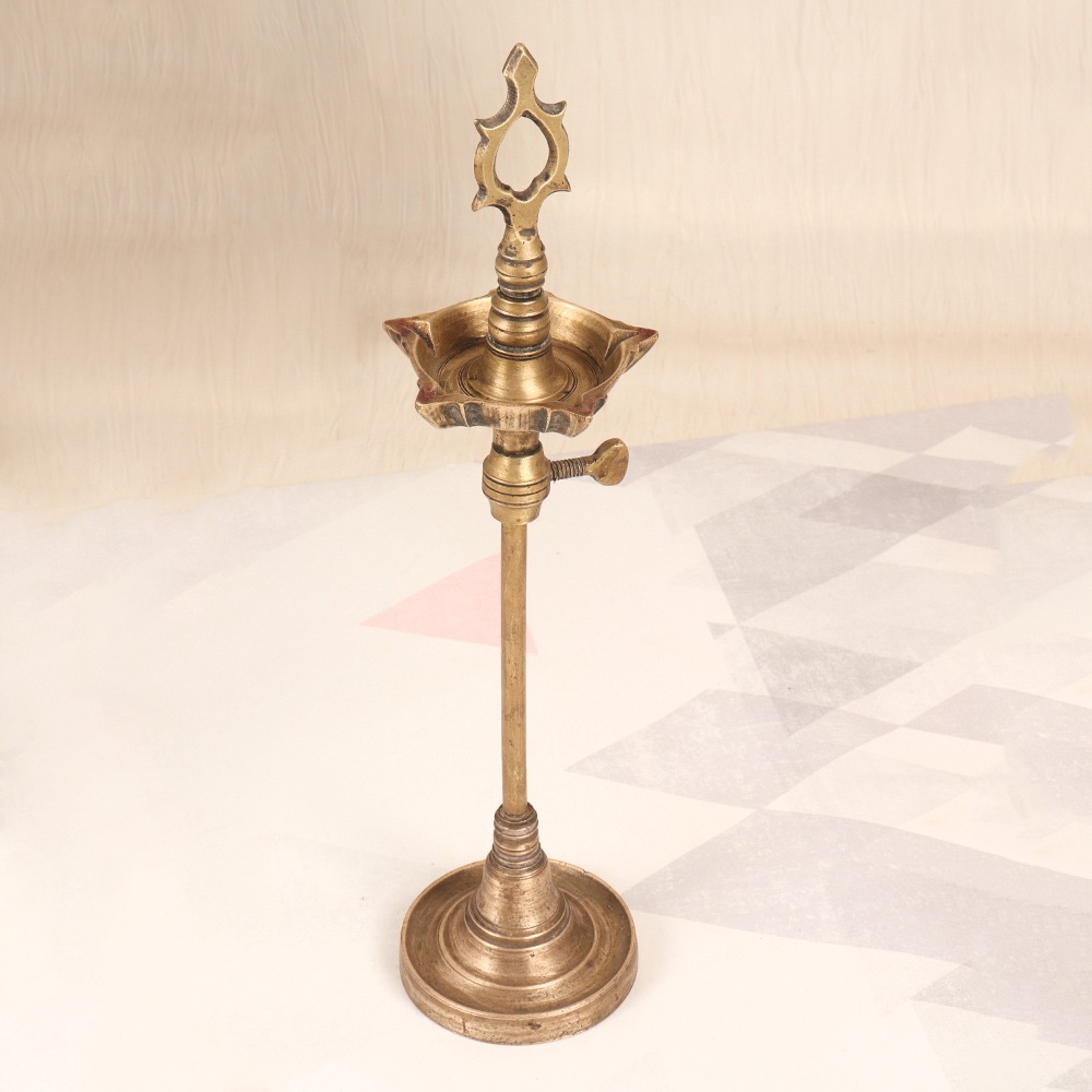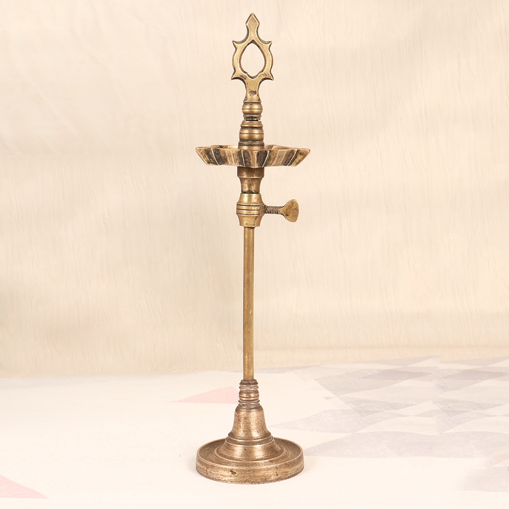 Discover the enchanting allure of our Vintage Brass Oil Lamp, a masterpiece of South Indian craftsmanship that effortlessly blends tradition and modernity. Crafted with the utmost care and attention to detail, this stunning lamp will transport you to a bygone era, filling your space with a warm, inviting glow. As the soft, flickering light dances across the room, this oil lamp creates a serene, calming ambiance that invites you to slow down, unwind, and savor the moment. Whether you're seeking to elevate your home decor, infuse your living space with cultural charm, or simply enjoy the timeless allure of a classic oil lamp, this versatile piece is the perfect addition to your abode. Embrace the captivating glow of our Vintage Brass Oil Lamp and let it transport you to a world of timeless elegance and South Indian heritage. Elevate your space and immerse yourself in the captivating beauty of this stunning, functional work of art.