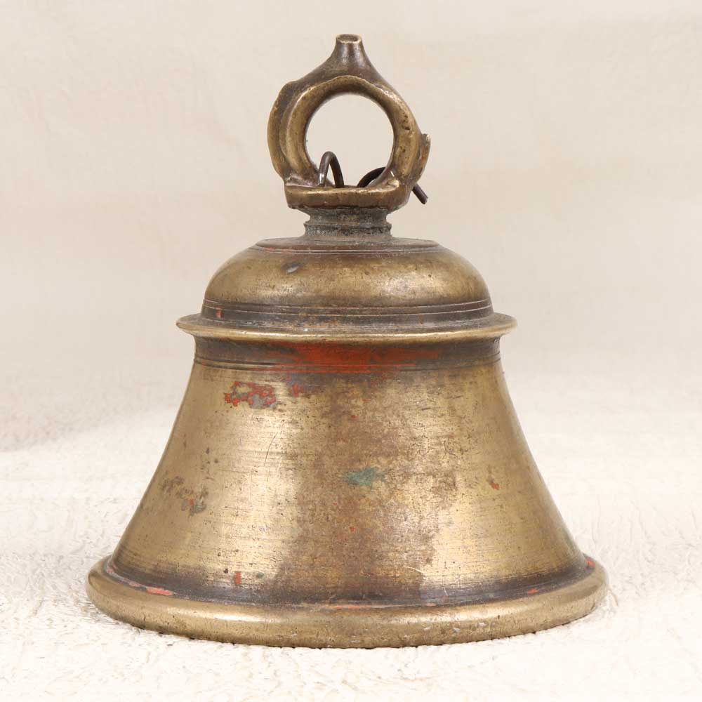 The soothing ring of this vintage Indian temple bell infuses any space with peace and serenity. Crafted by skilled artisans, this beautiful bell features a timeless plain design in earthy brown metal. In a yoga studio, ring this bell to call students to their mats. Or hang it in an entryway and ring it as a happy greeting for visitors. The pleasant tone is said to have a cleansing effect, washing away stress. Use it in meditation spaces to help calm and focus the mind before practice. With its traditional styling and handcrafted quality, this vintage bell adds a special touch to any home. The rich tone brings a sense of tranquility, perfect for retreats or relaxation spaces. Let this beautifully simplistic bell fill your home with peace.