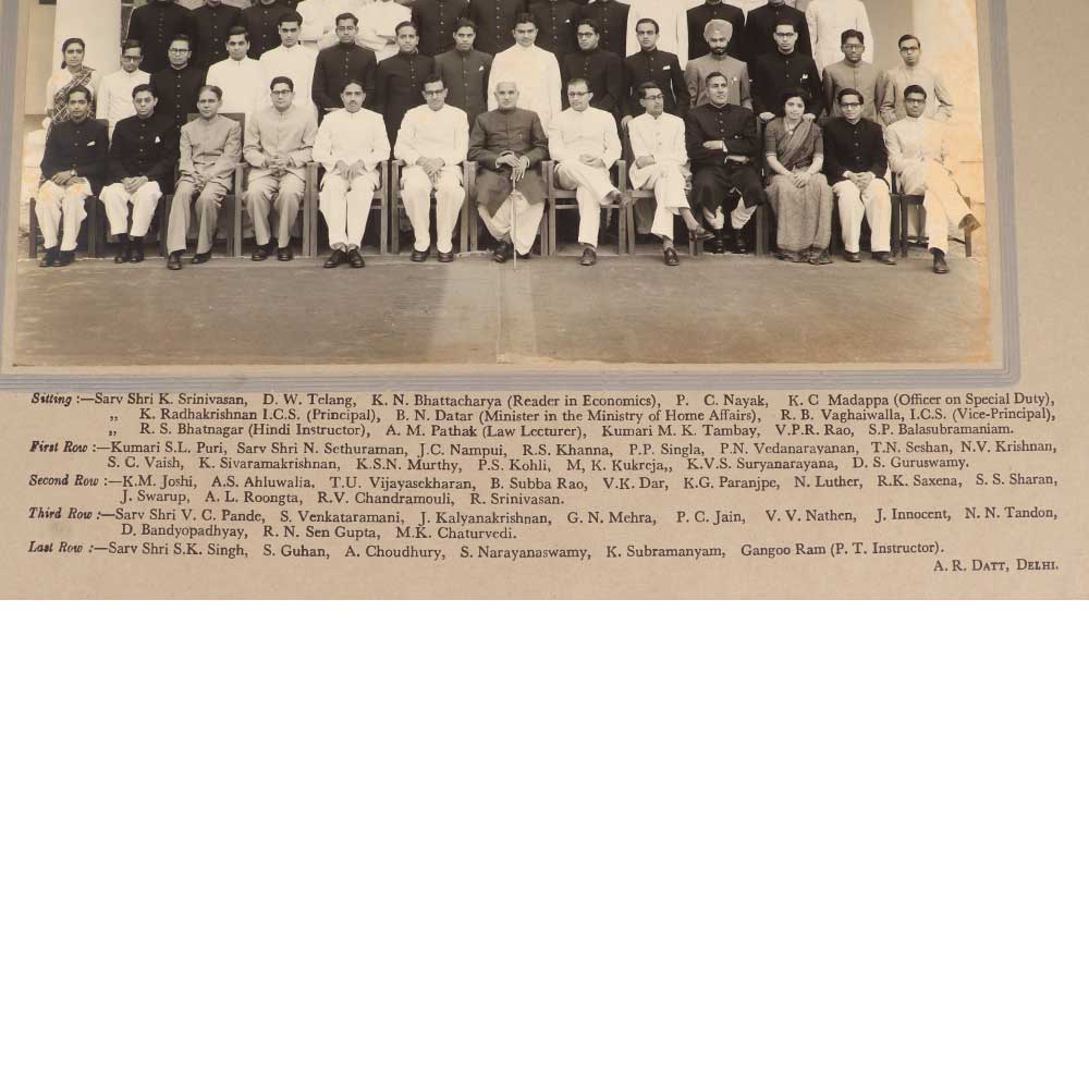 Step back in time and connect with history with this one-of-a-kind vintage photograph from the Indian Administrative Service's Ninth Regular Training Batch in Delhi, 1955-56. This crisp black and white image immortalizes dozens of India's future nation-builders, assembled for a formal group portrait during their prestigious training. The striking composition immediately catches the eye, with trainees and instructors neatly lined up in rows, exuding optimism and promise. Their formal attire reflects the importance of the occasion as they prepared to shape India's future post-Independence. This is a rare chance to glimpse the faces of these idealistic young leaders during a pivotal transitional period in India's history. This special photographic artifact allows you to visually connect with and commemorate the early graduates of an institution that has produced many of India's top government officials. An ideal addition to any Indian history collection or as a thoughtful gift. Display proudly as a daily reminder of the progress made since the early nation-building years.