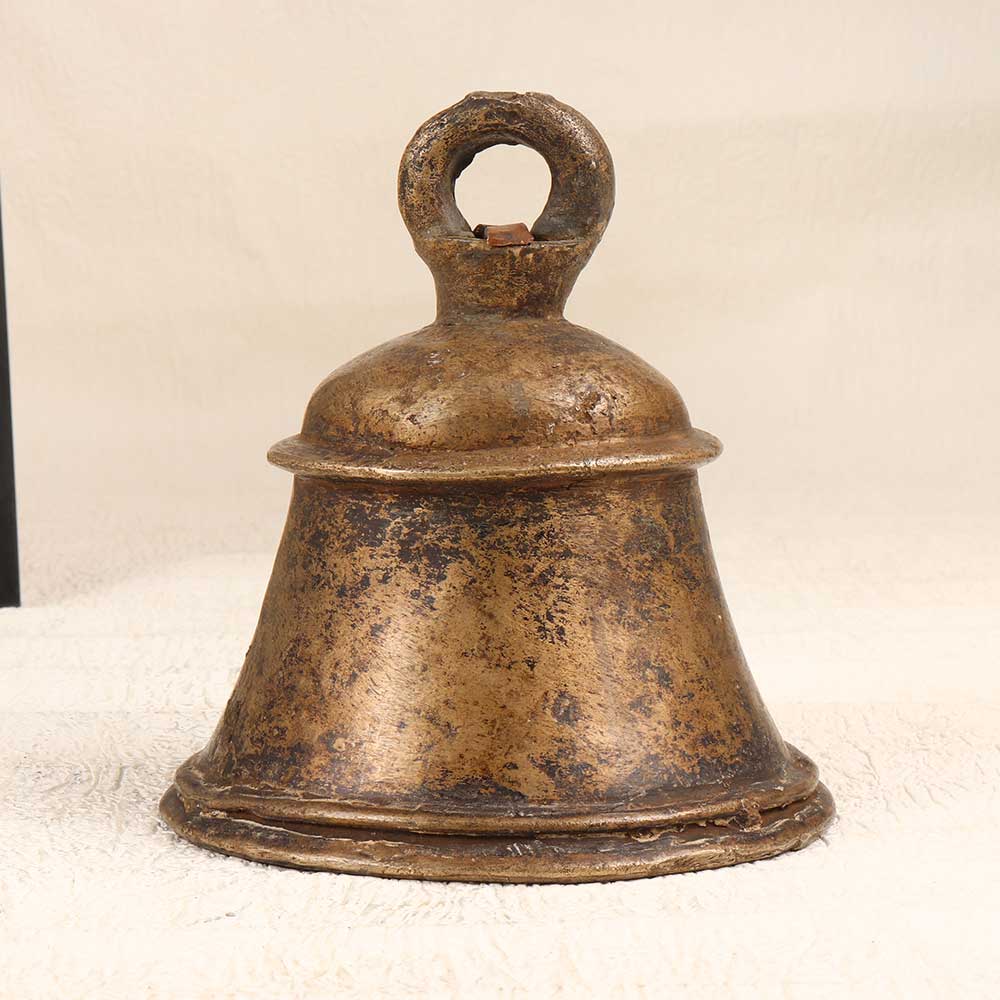 Let the rich, resonant tones of this vintage bell metal temple bell transport you to a peaceful sanctuary. Crafted in the hills of Himachal from durable bell metal in a stately brown finish, this decorative accent piece adds intrigue to any spiritual space. Allow the deep, meditative hum of this bell to call you to prayer or meditation. As you strike the side with a mallet or clapper, its pure, sustained ring will resonate throughout your home or sacred space. Display it prominently to admire its timeless craftsmanship, or mount it near your altar or seating area for all to enjoy its soothing tones before services or rituals. Whether you follow Eastern spiritual traditions or simply appreciate decorative items with the history behind them, this vintage Indian temple bell makes a meaningful addition to your home. Let its reverberations remind you to pause and reflect amidst the hustle of everyday life.