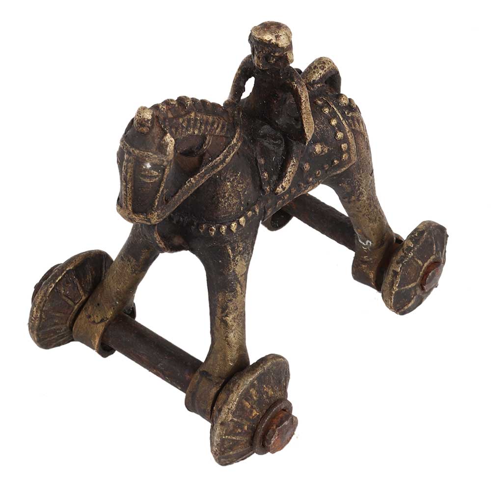 Highly Decorative Brass Rider On Horse With Wheels Temple Toy were roughly formed, rolling unevenly, but are nicely detailed figurine of a Toy Horse on wheel also know as pull Toy was used as a Toy and now used as a Collectors Office. Wedding gift, anniversary gift, souvenier,Home decoration and house warming gift.
