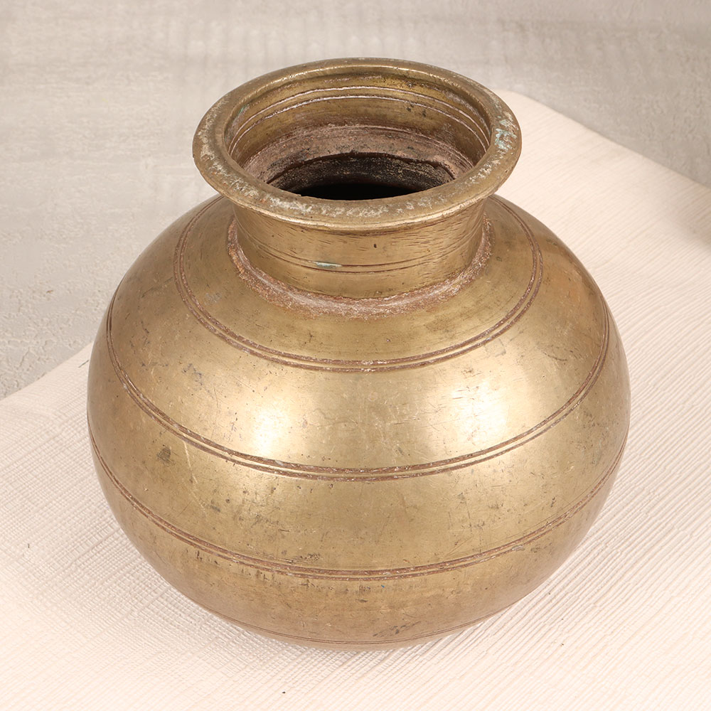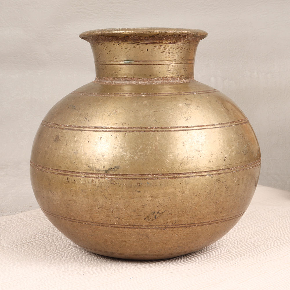 Buy a Vintage Brass Holy Pot online which is a timeless masterpiece meticulously handcrafted by highly talented Indian artisans in the esteemed tradition of Himalayan Art. Cast from high-quality brass, this unique piece boasts an antique brown finish, adding a touch of old-world charm to any space. With its intricate detailing and artisanal touch, this holy pot transcends mere functionality to become a captivating piece of art. Its versatile design makes it a perfect addition to various settings, whether adorning your home, office, restaurant, hotel, or cafe. As an indoor flower pot, it not only serves as a vessel for nature's beauty but also elevates the aesthetic of its surroundings. This vintage brass pot holds the allure of a bygone era and is a delightful addition to any vintage collection. It serves as a thoughtful and enduring gift for your family, friends or relatives, making it a meaningful choice for special, festive, or auspicious occasions. Embrace the rich heritage and craftsmanship embodied in this handmade treasure, bringing a touch of timeless elegance to your space.