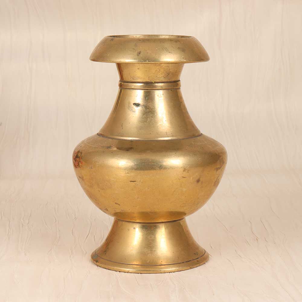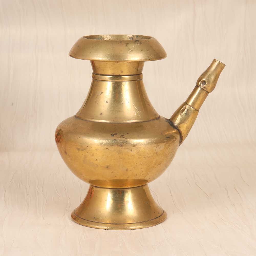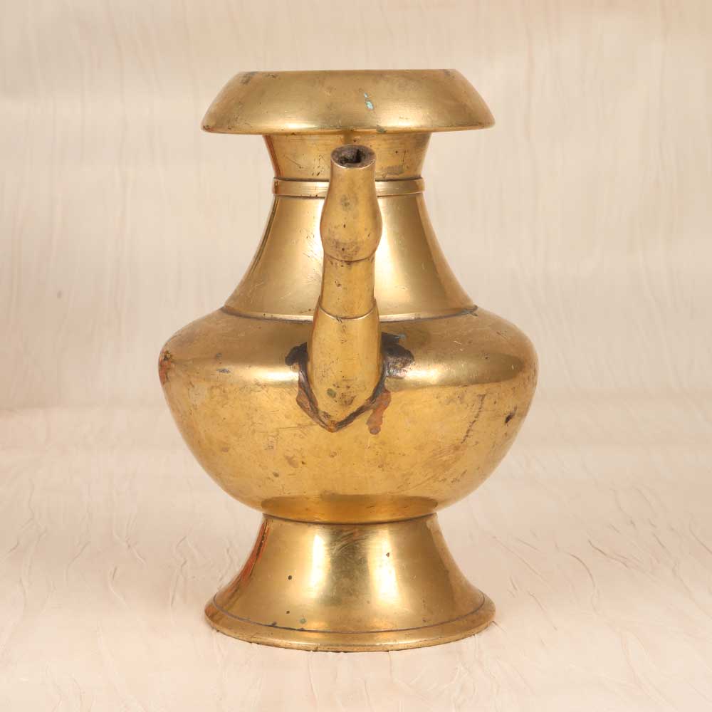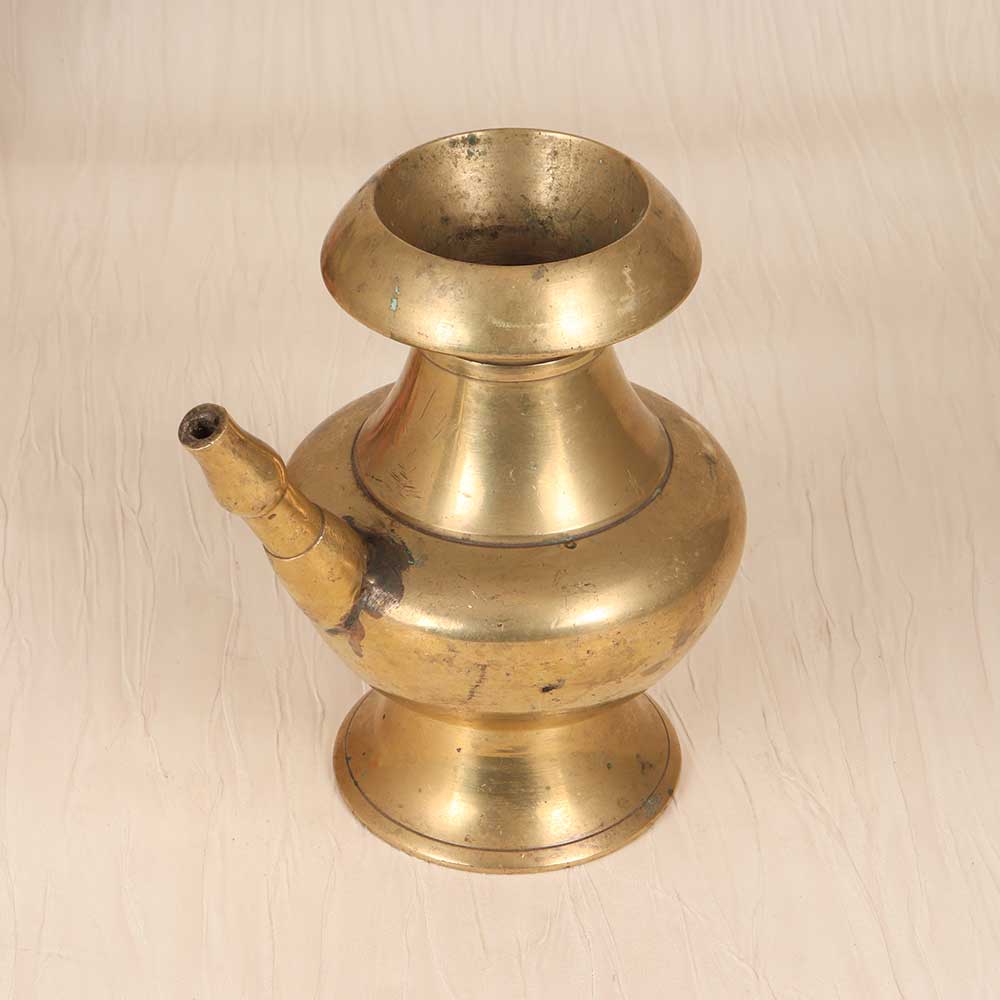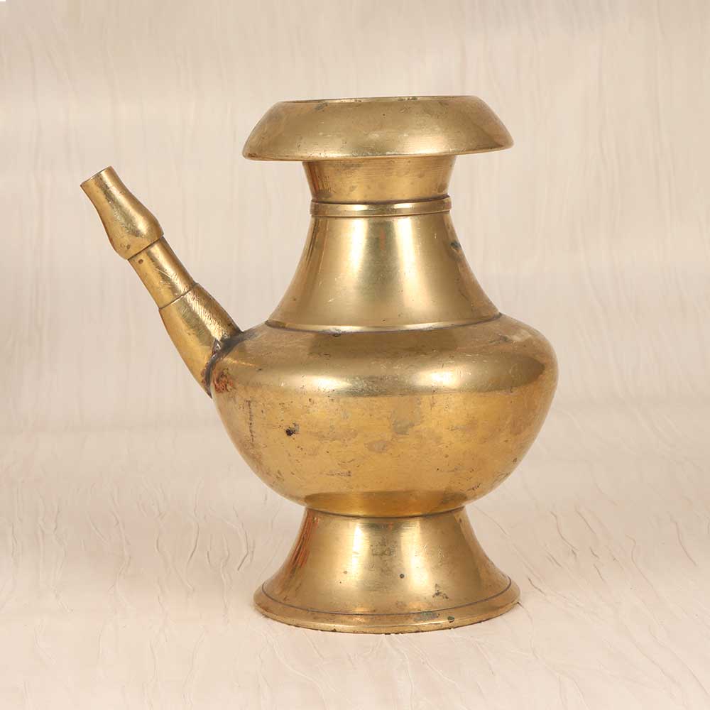 Step back in time with this antique brass holy water pot, perfect for transporting holy water and blessing your home. Handcrafted from solid brass, this vintage-inspired pot features a classic spout and handle design reminiscent of ancient times. The unadorned plain brown finish gives the pot an aged, weathered look that adds rustic character. Whether placed beside your front door to bless yourself and guests as you come and go, or kept bedside for your daily spiritual grounding, this brass pot provides a meaningful way to carry on tradition. Its elegantly simple form will complement any decor from farmhouse to bohemian. Let this brass holy water vessel connect you to generations past as you incorporate it into your daily rituals and surroundings.